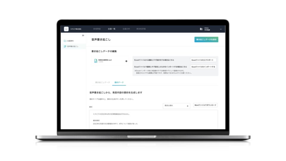 時間のかかる会議の書き起こしを、AIを使ってサポートします。また、会議音声から自動的に「要約」が出来上がります。