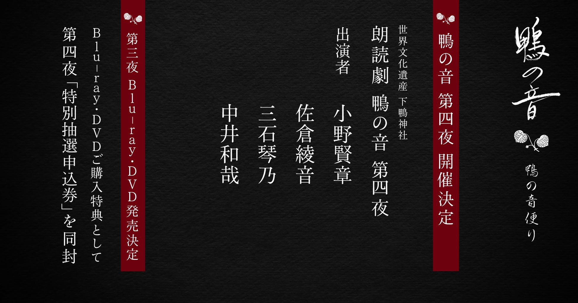 2023年7月発売予定の「鴨の音」第三夜 Blu-ray&DVDに「鴨の音」第四夜 特別抽選申込券が同梱