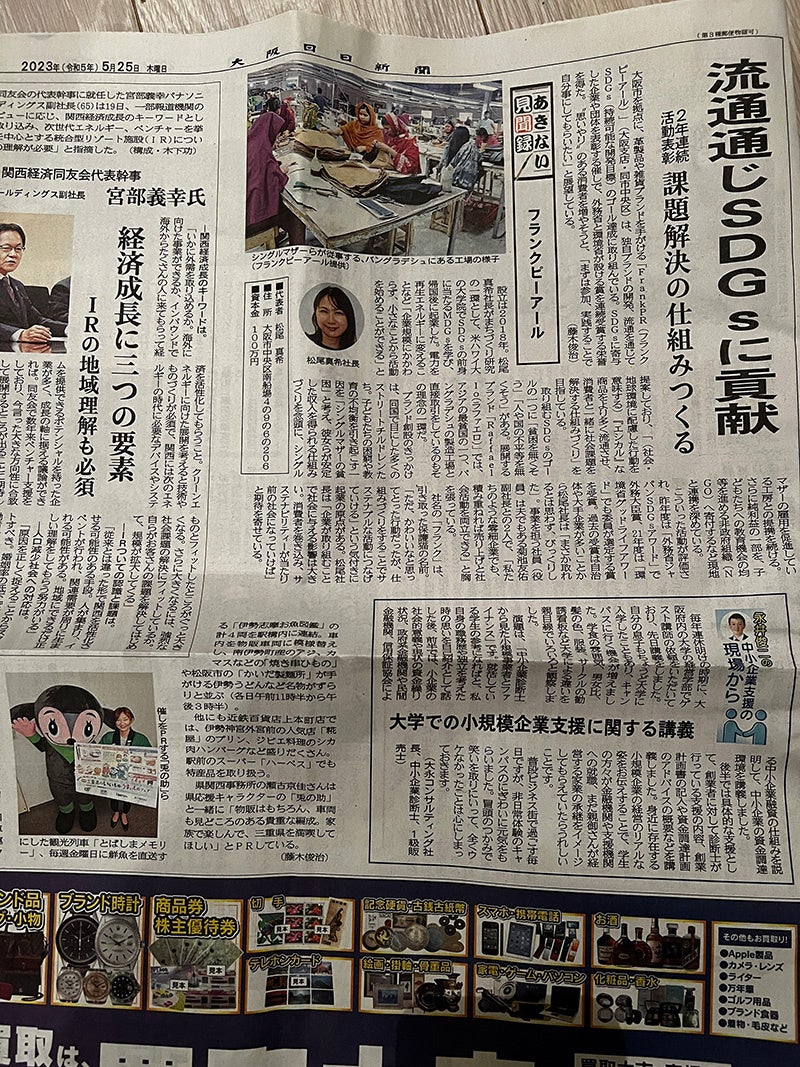 "ラファエロ"の製品は、最も権威のあるSDGsアワードである外務省ジャパンSDGsアワードを受賞した(外務大臣賞)唯一のファッション業界の企業です。シングルマザーの雇用支援、貧困児童の撲滅、障害者雇用によるダイバーシティ&インクルージョンの実現、都市緑化への寄付、エシカル商品の販売、再生エネルギーを利用した事業運営、アップサイクルレザーの商品開発など、多角的なSDGs活動を行っています。これらの活動は、日本国内だけでなく、アジア最貧国であるバングラデシュの経済格差の解消にも貢献しており、日本とバングラデシュの循環型共栄圏の生成に努めています。