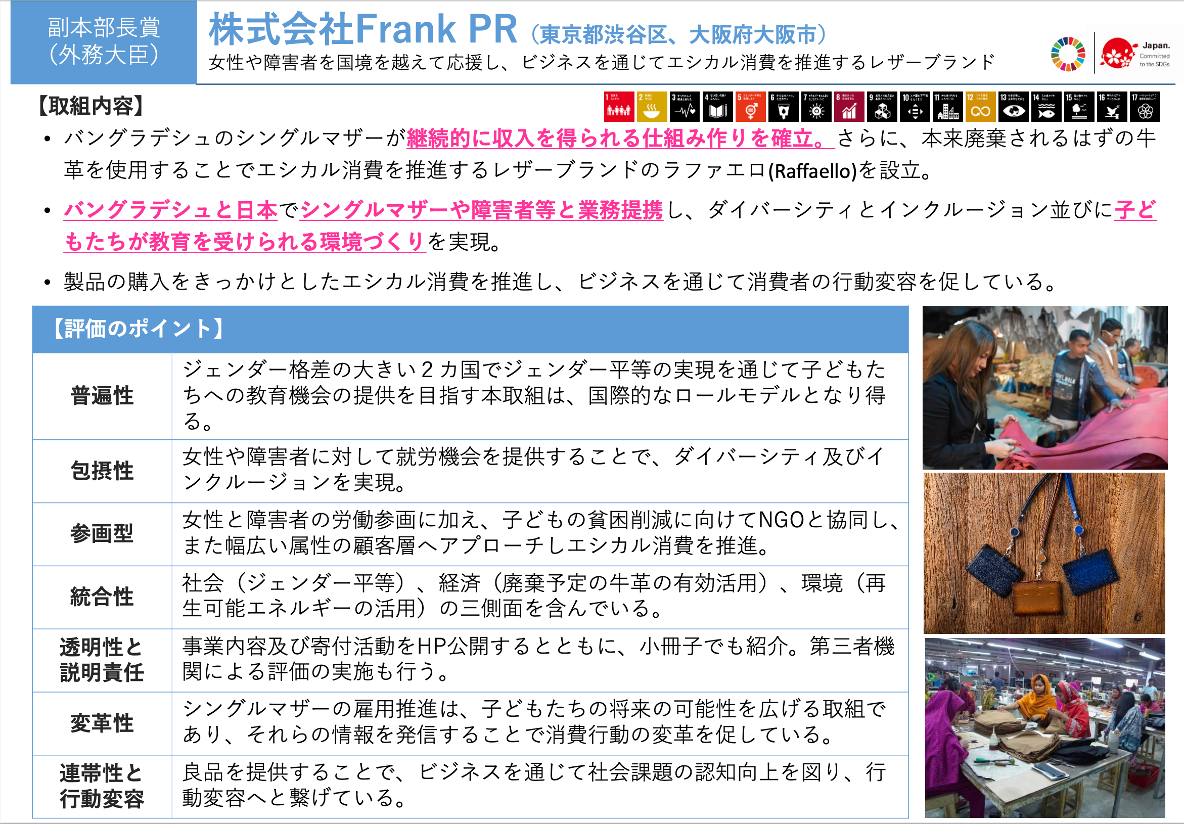 外務省ジャパンSDGsアワードを受賞した株式会社FrankPR運営の革製品ブランド”ラファエロ”がSDGs達成に貢献する記念品・ノベルティの提供で、企業のサステナブル調達を支援