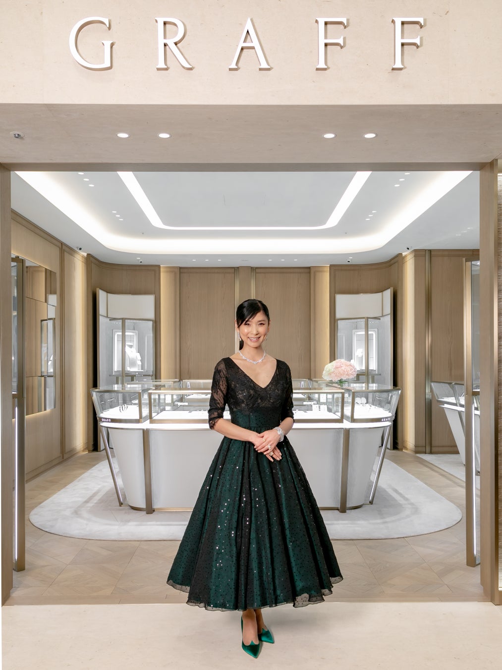 リニューアルオープン前日に行われたオープニングセレモニーには、女優の黒木瞳さんが登場。グラフを象徴する大粒かつ極上のダイヤモンドやイエローダイヤモンドがあしらわれた総額約10億円のジュエリーを身に纏い、グラフダイヤモンズアジア プレジデント&CEO アルノー・バスチャン、グラフダイヤモンズジャパン ジェネラルマネージャー カーンかおると共にリニューアルを祝いました。