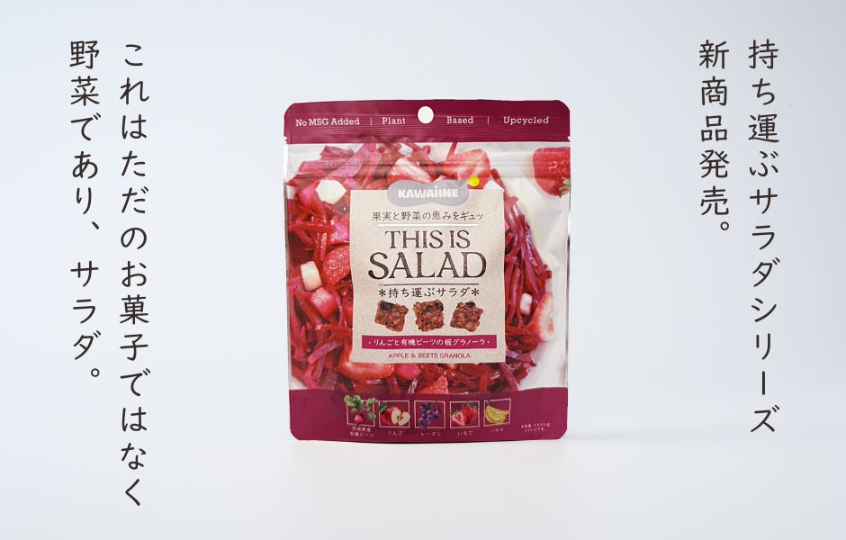 【新商品】「栄養と美味しさの両立を実現するアップサイクル&プラントベース」がコンセプトの食品ブランド「KAWAÌINE」から「THIS IS SALAD 有機ビーツとリンゴの板グラノーラ」が限定発売