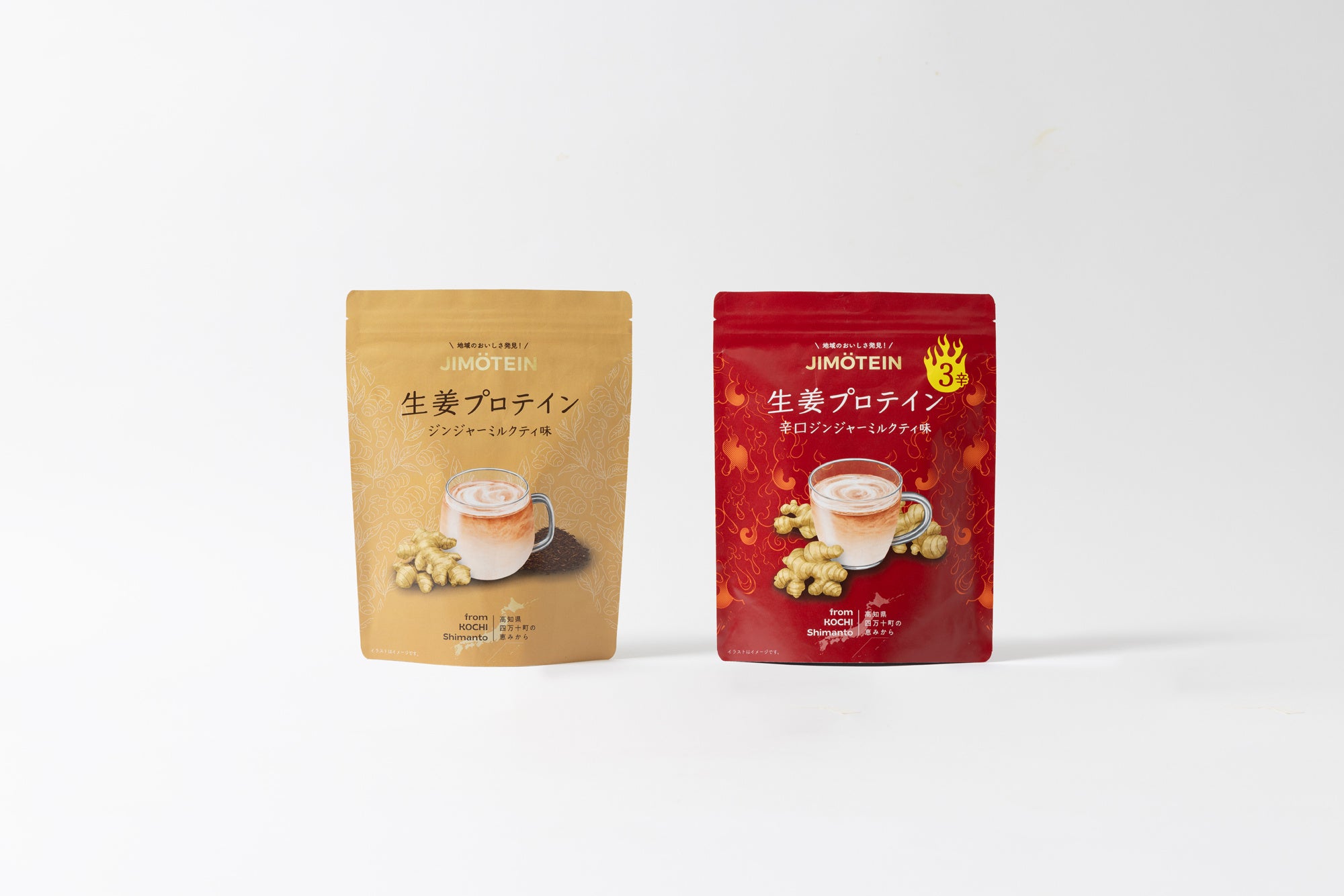 生姜の生産量が日本一の高知県四万十町の生姜を惜しみなく使用した、ピリッとした生姜感が特徴のプロテイン。 万人が飲みやすいノーマルタイプと、 生姜好き上級者向けの 「3辛」の2種類をラインナップしました。 飲みやすさを追求したジンジャーミルクティ味は、 水・ミルクどちらで割っても美味しく、 冬はホットで温活アイテムとして楽しめます。