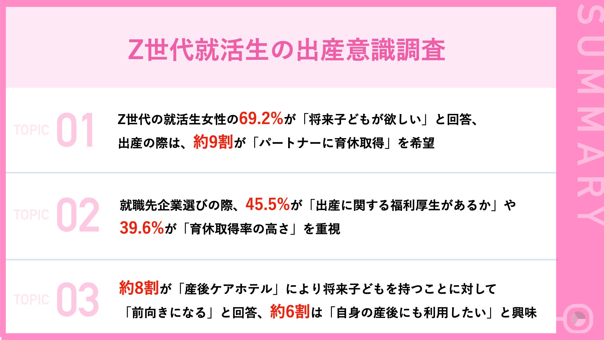 - Z世代の就活生女性の約7割が「将来子どもが欲しい」と回答