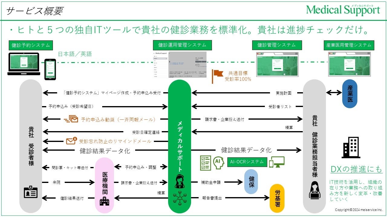 バックオフィス業務の効率化やコストの適正化を中心にしたBPO事業を展開する株式会社メイサービス(本社:愛知県名古屋市、代表取締役社長:谷脇正樹、以下「当社」)は、株式会社アイリックコーポレーション(本社:東京都文京区 代表取締役:勝本竜二、証券コード:7325)の非定型AI-OCRソリューション「スマートOCR」と「メディカルサポート健診運用管理システム」をAPI連動し、2024年5月1日(水)より「健康診断結果(以下「健診結果」)のデータ化サービス」のオペレーションを強化し、サービス品質を向上します。