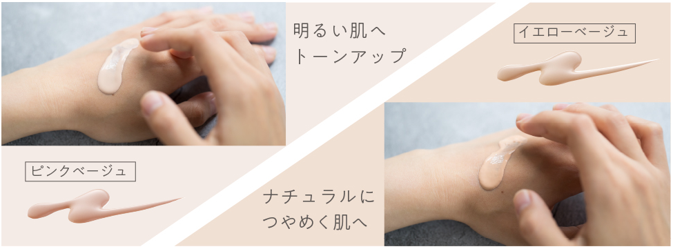 〈ピンクベージュ〉〈イエローベージュ〉の2色展開で、肌のトーンや仕上がりに合わせて選べます。
