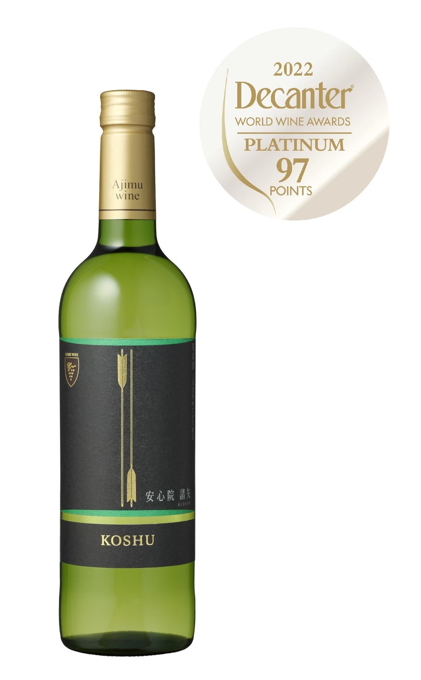 日本(アジア)ワインで唯一、プラチナ賞に輝いたのは、『安心院ワイン 諸矢 甲州 2021』。(山梨県以外では初の受賞)97点という高い評価を得ました。