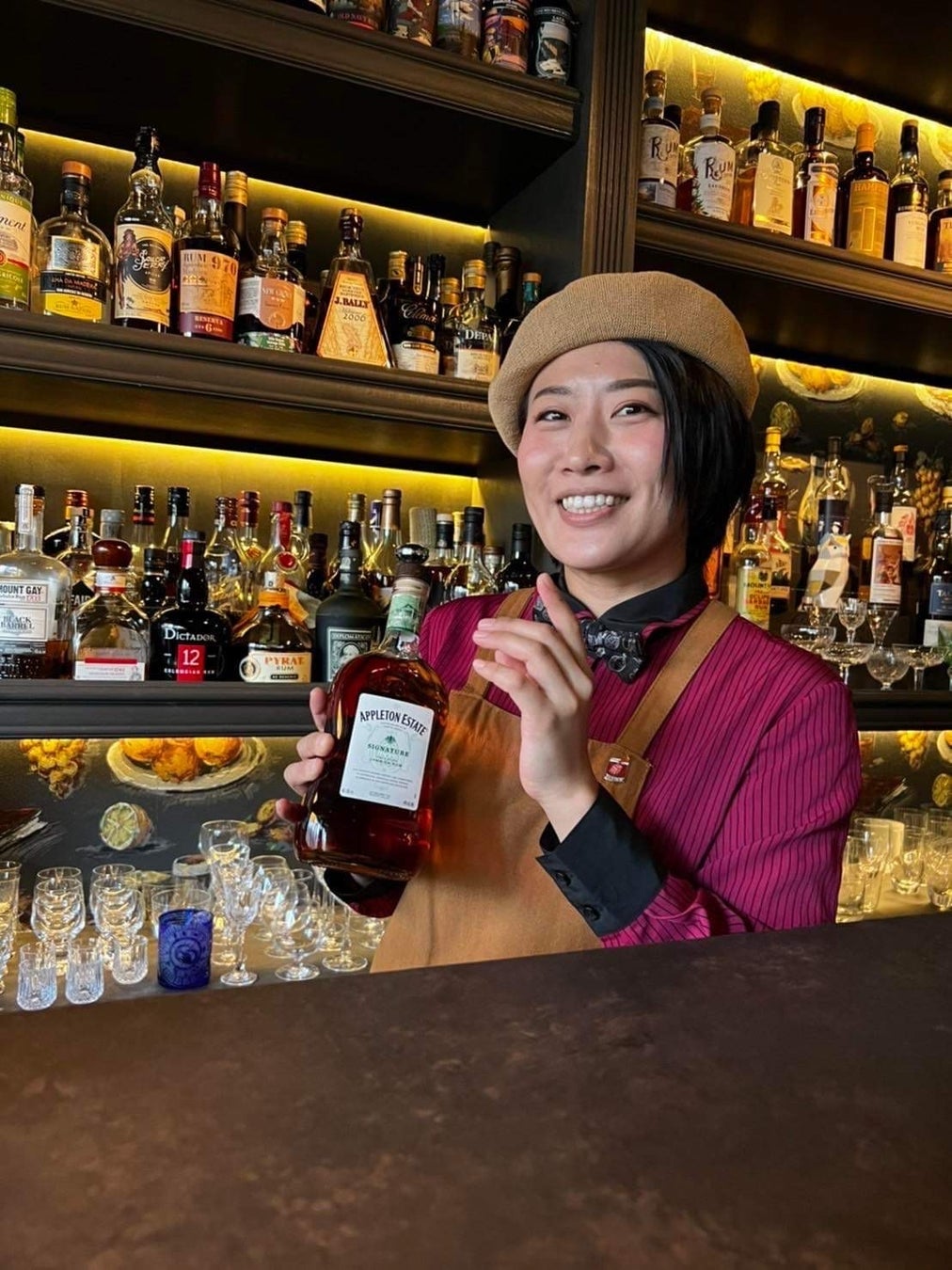 手塚さんには、サトウキビ栽培から瓶詰めに至るまで、全ての工程にこだわりを持ち自社管理している、ジャマイカを代表するラム「アプルトン」を使ったカクテルをご提供いただきます。