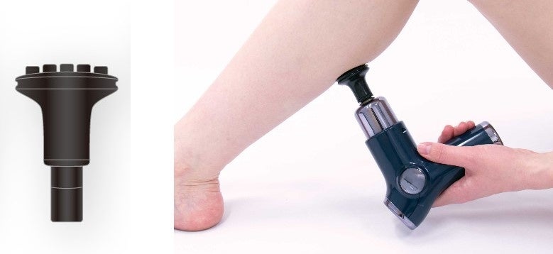 本体の重さは、女性でも片手で楽々扱うことができる約460g。叩きの速度は6段階、さらにアタッチメントを押し付ける強さでも強弱の調整ができ、対象の部位や身体の状態にあわせて細かなケアが行えるように進化しました。付属のアタッチメントは計4種類あり、身体の各部位ごとに適した型を選択いただくことで、全身のセルフストレッチを効果的に行うことができます。