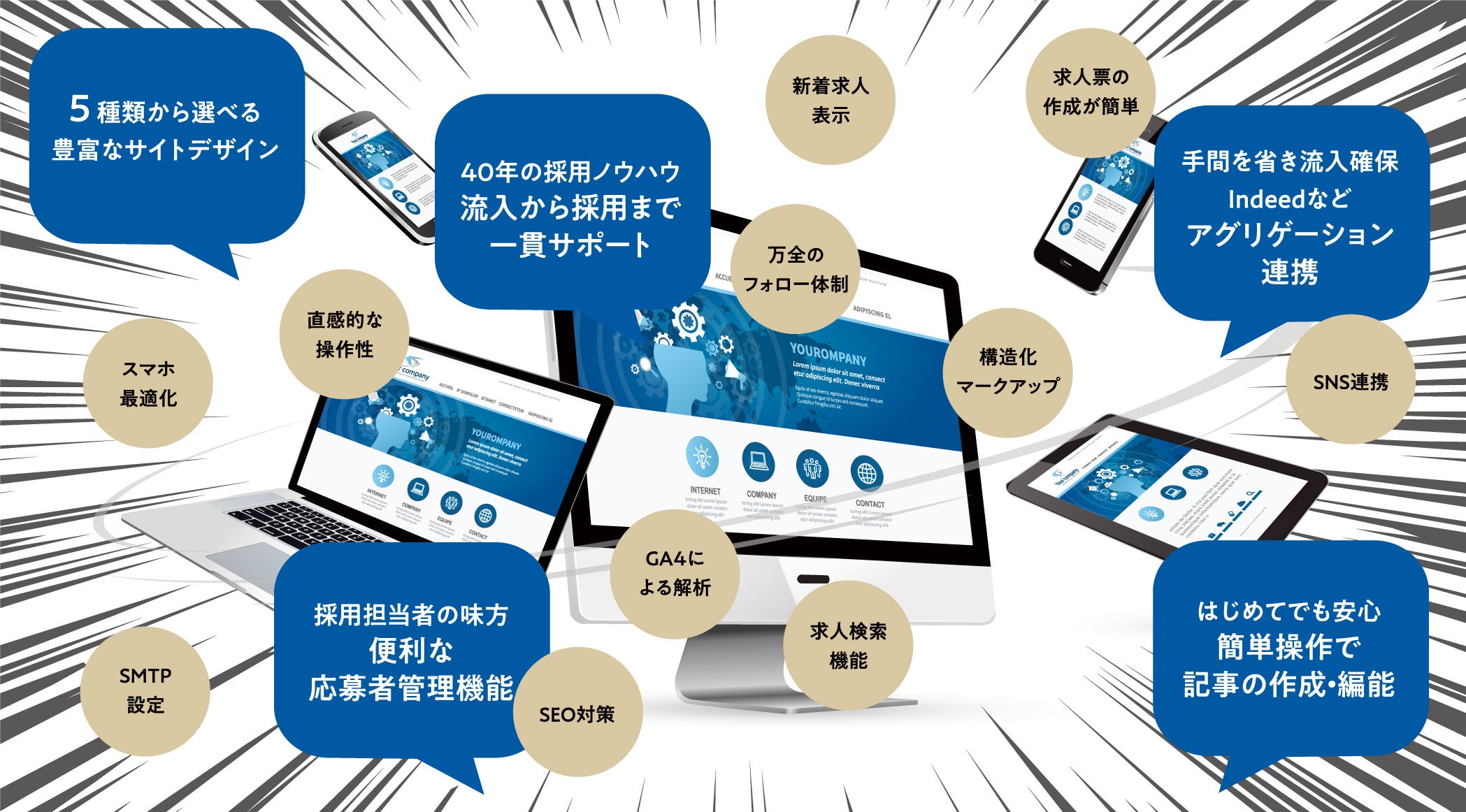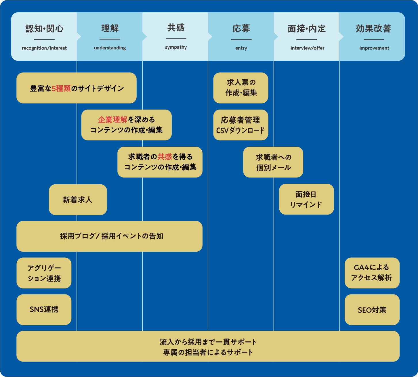 採用サイトの流入から採用まで一貫サポート。採用成功まで寄り添うツール