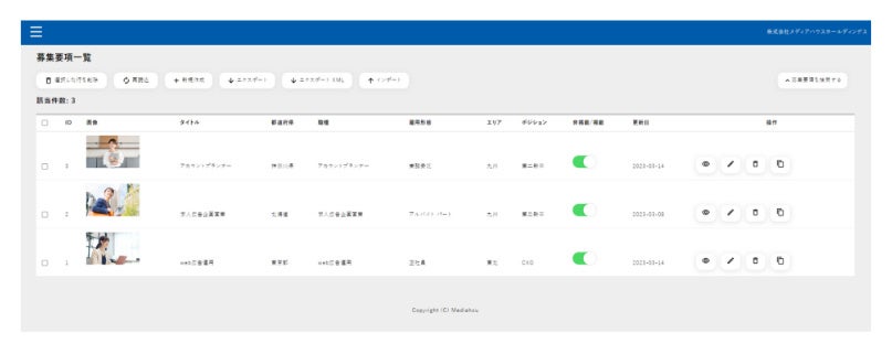 全国の中小企業の採用を支援して40年のメディアハウスホールディングスが提供する年間取引7,000社のクライアントの「あるといいな」をギュッと詰め込んだオウンドメディアリクルーティングツールです。