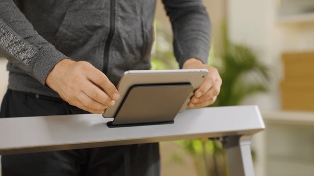 目の前にデバイススタンドがあるので、あなたのデバイスを置いて好きなコンテンツを再生してランニングスタート!