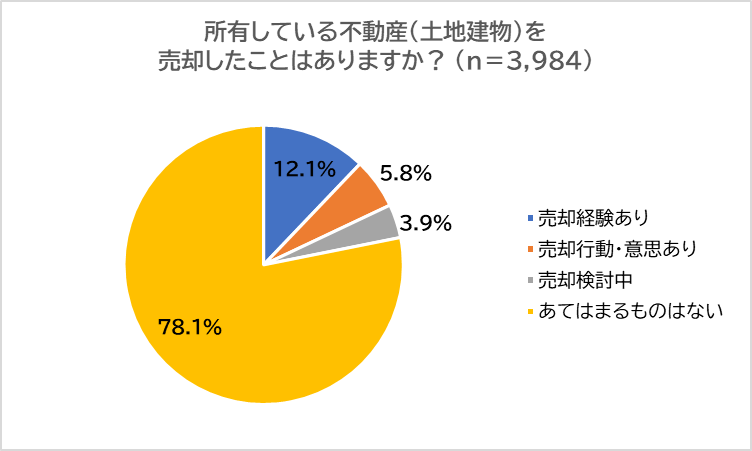 信頼できる不動産売買のプロが分かるサイト「おうち売却の達人」を運営する全国不動産売却安心取引協会は、毎年9月23日の「不動産の日」(全国宅地建物取引業協会連合会(全宅連)制定)に合わせて、持ち家に居住中の25歳以上70歳未満の男女全国3,984人を対象に「不動産(土地建物)の売却」について調査を行いました。