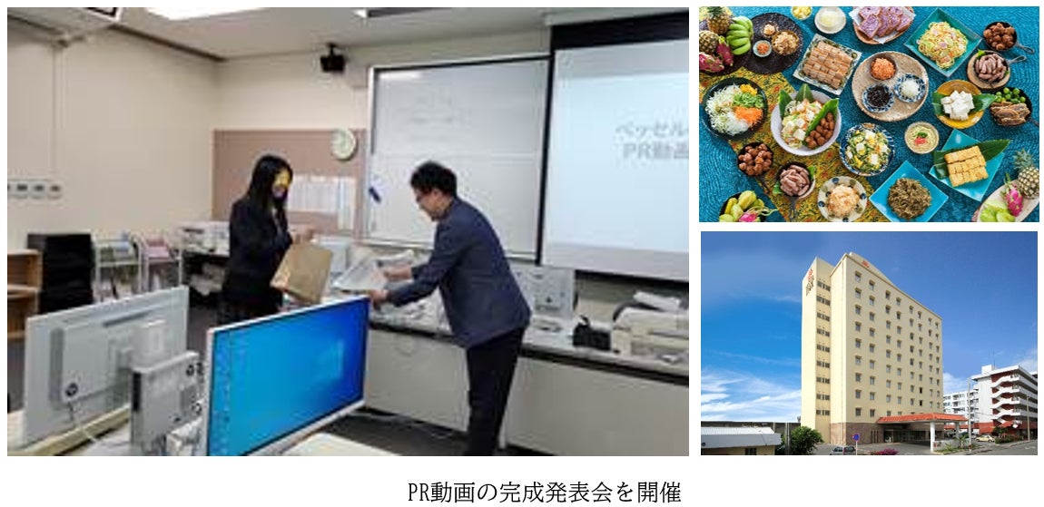 12月、PR動画の完成発表会を学校で開催し、テーマごとに優秀作品3点を選出。学生がベッセルホテル石垣島のサービス・特徴を理解した上で、お客様を分析、映像企画構成・制作・発表までの各工程を踏み、実際に紹介動画が配信されることで、学生たちはリアルなプロモーション活動の流れを体験。学生たちが自身の作品がどのような反響を得るのか期待を寄せる中、インターネットやデジタルツールを活用し、学生作の動画公開となりました。