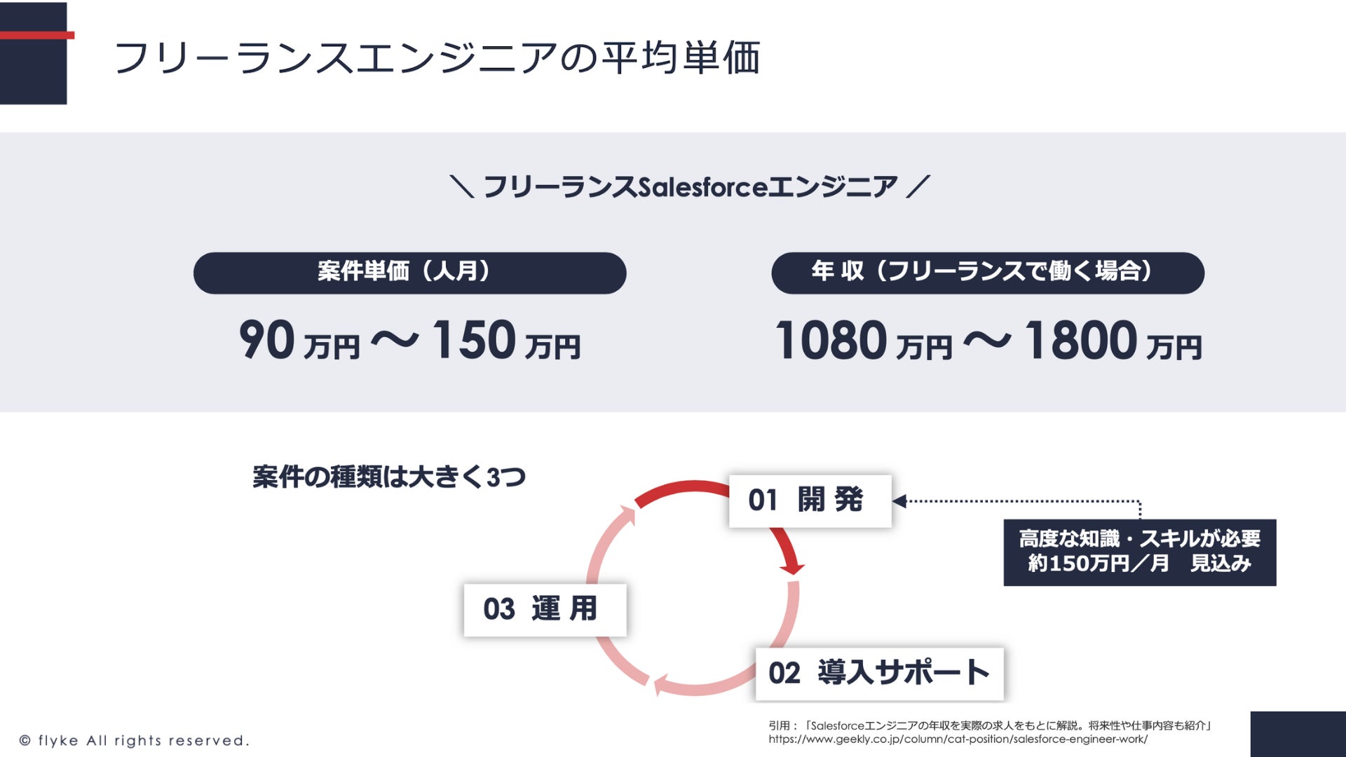 具体的なサービス内容としては、帳票レイアウトの変更などのカスタマイズ作業から、内容修正などのサポートを承っております。さらに、フライクでは、Salesforceエンジニアを社内で育成し、内製化するための提供プランもご用意しております。