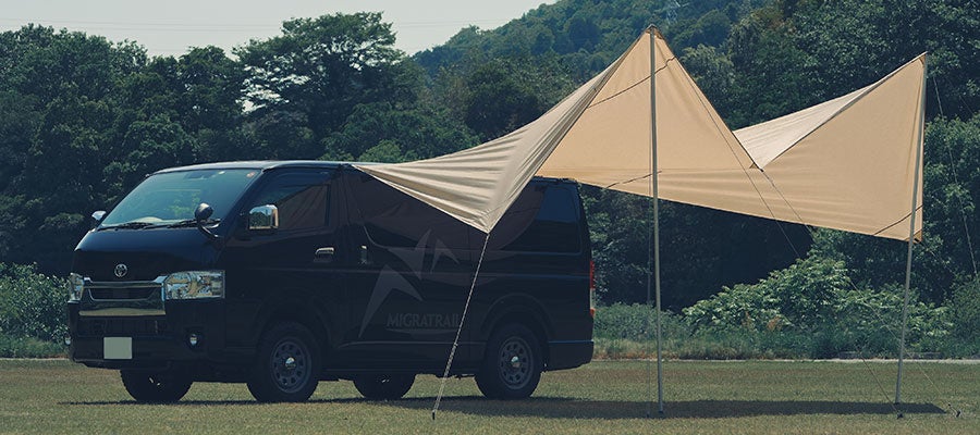 酷暑環境化でのアウトドアをサポート。車外・車内でのアウトドアアクティビティ時に、直射日光から身を守る日除け商品を発売開始。