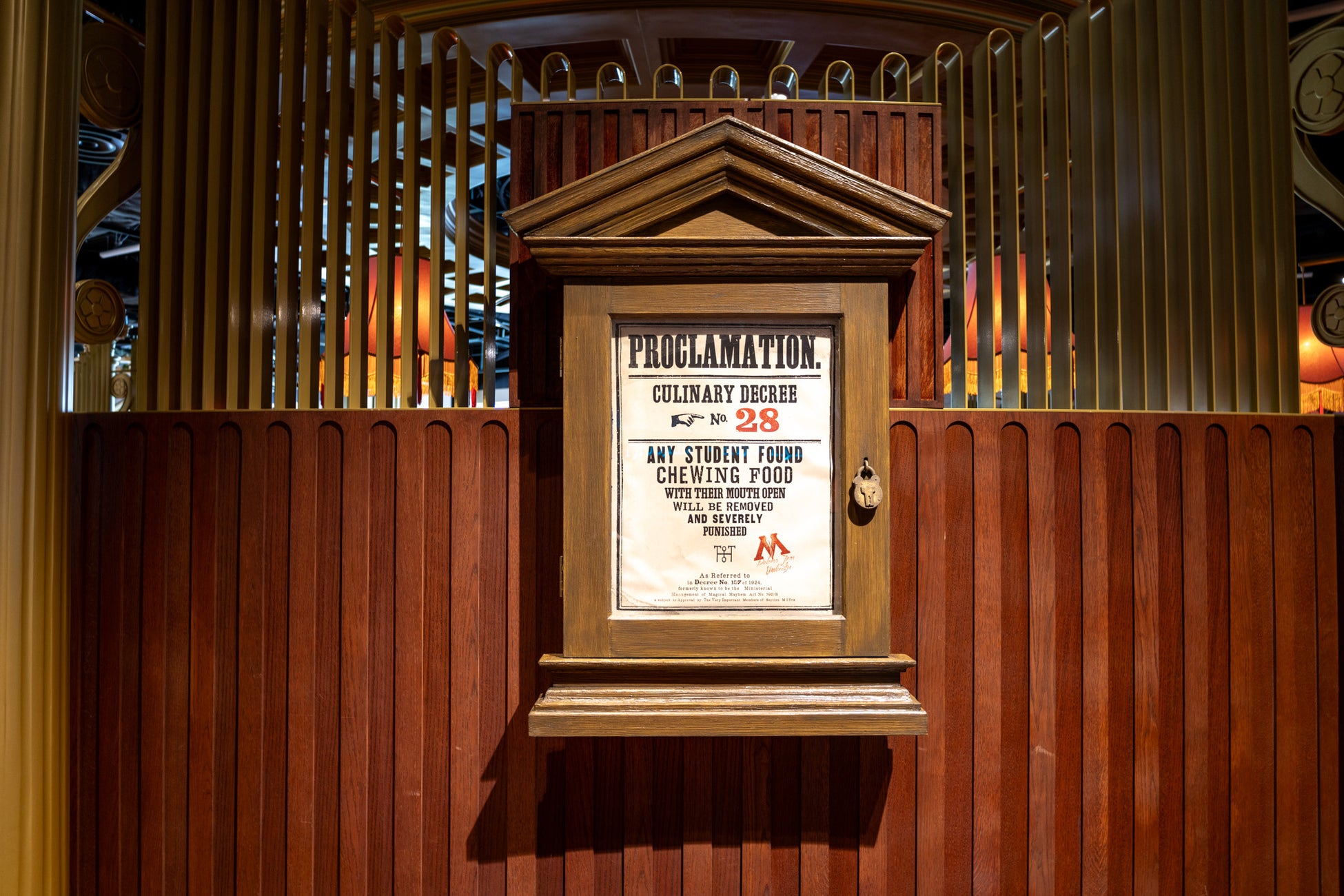 この「アンブリッジ教授のアフタヌーンティー」は、「バックロットカフェ」の中央に設けられた、アフタヌーンティー専用の席でお召し上がりいただけます。映画に登場するアンブリッジ教授の書斎のように全体がピンク色で統一された空間では、動く猫の肖像画が施されたお皿が飾られていたり、アンブリッジ教授の人形が天井を回っていたりと、足を踏み入れるだけでわくわくする要素が詰まっています。スイーツや薔薇での装飾に加え、「食」にまつわるホグワーツの教育令が掛けられており、アンブリッジ教授のキャラクターを表した細かな演出が散りばめられた内装もこだわりのポイントです。なお、事前予約は受けておらず、数量限定で提供いたします。特別な空間で味わう本格的なアフタヌーンティーを是非ご体験ください。