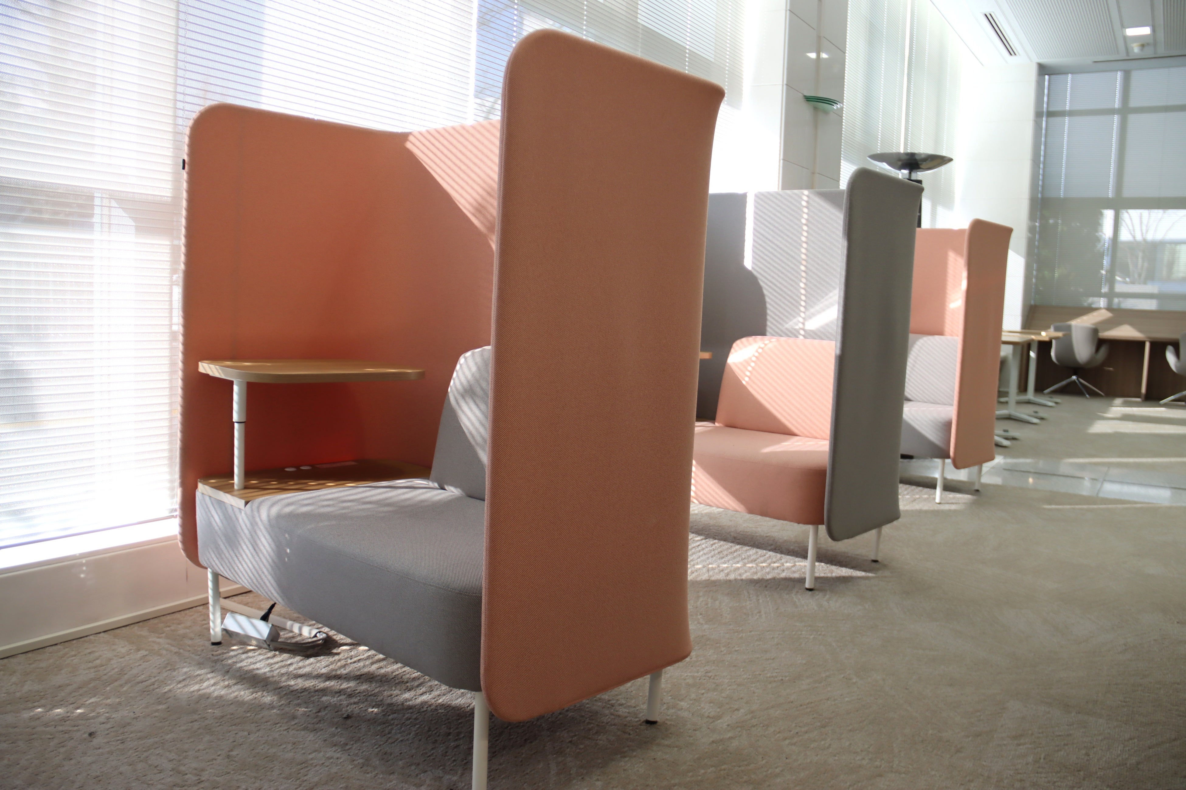 2025年4月にリニューアル済みのフロア。視界を気にせず利用できる個人用デスクなどを設置し、快適に過ごせる空間。