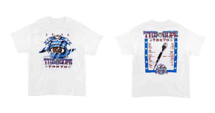 本アイテムは、『THE HOPE』の会場である代々木第一体育館をイメージしたグラフィックをフロントに施し、バックにはマイクと全出演者名 が記載されたコラボレーションならではのスペシャルなデザインとなり、会場にて限定1,000枚発売されます。