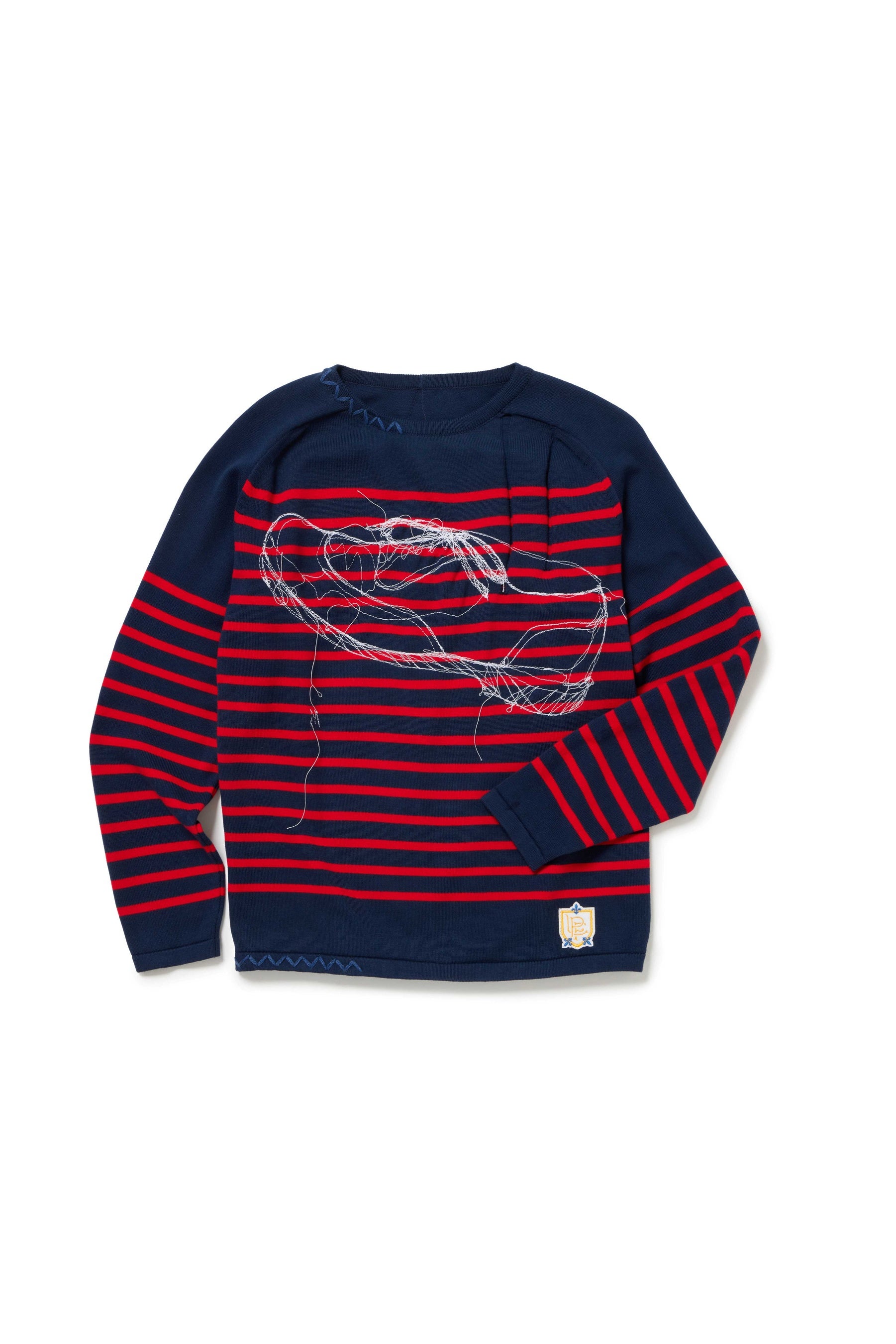 カットソータイプが一般的なバスクシャツですが、lucien pellat-finetではパターンにあわせて直接編目を増減し一枚一枚丁寧に編み上げ、その編地片をリンキングでかがり合わせて製品とするフルファッションド成型を採用しています。そのため、カジュアルの中にラグジュアリーの要素を感じさせる、フレンチテイストなデザインに仕上がっています。 この丁寧な職人技で仕上げられたマリニエール(バスクシャツ)と、一針一針丁寧に縫われた刺繍のモチーフが組み合わされ、20枚限定のコラボレーションアイテムとして展開します。