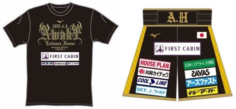 飛行機のファーストクラスをイメージしたコンパクトホテルを運営する株式会社ファーストキャビンHD(本社:東京都港区、代表取締役社長:米良浩幸)は、4月1日からプロボクサーの井上拓真選手と1年間のスポンサー契約を締結しました。そして、井上選手の父でトレーナーの井上真吾氏も支援いたします。契約に伴い、井上選手からはファーストキャビンの企業イメージを高めるプロモーション活動への協力をいただき、出場試合では『FIRST CABIN』の企業名またはロゴがプリントされたトランクスやTシャツを着用していただきます。4月8日のWBA世界バンタム級王座決定戦では、トランクスの腹部中央に『FIRST CABIN』のワッペンを貼付いたします。(写真参照)。