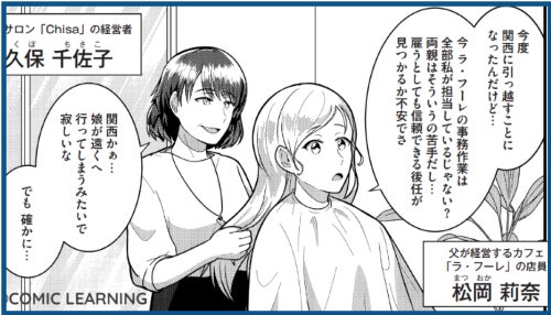 カフェを経営する両親を、バックオフィスで支えている娘が主人公。引越しが決まったため、店舗の事務作業をフルリモートで行うことに。これを好機に、数々の便利なITツールの導入を検討した結果はいかに!?