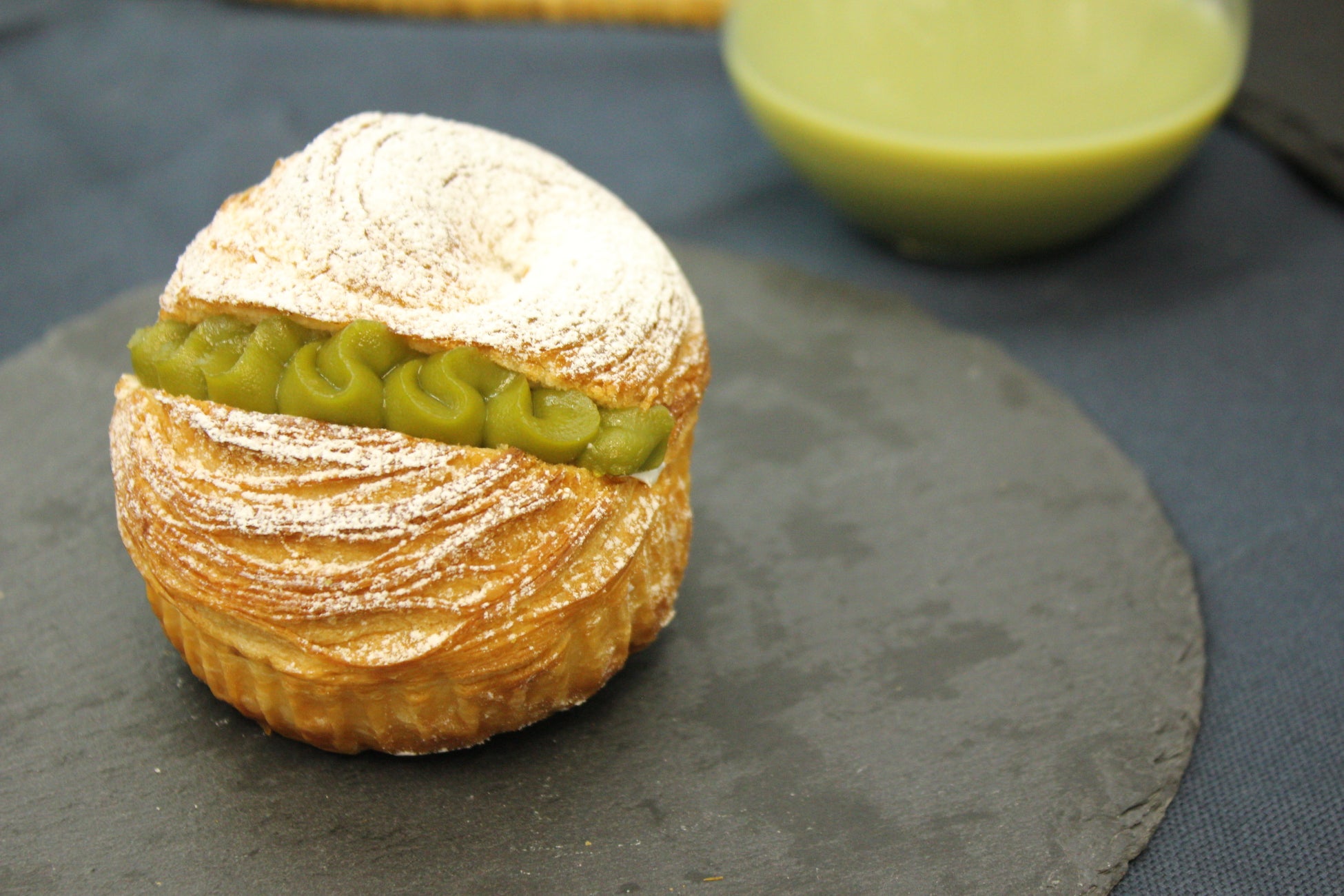 隠されたホイップが包むようにまとめる、抹茶クリームとデニッシュの味わい。