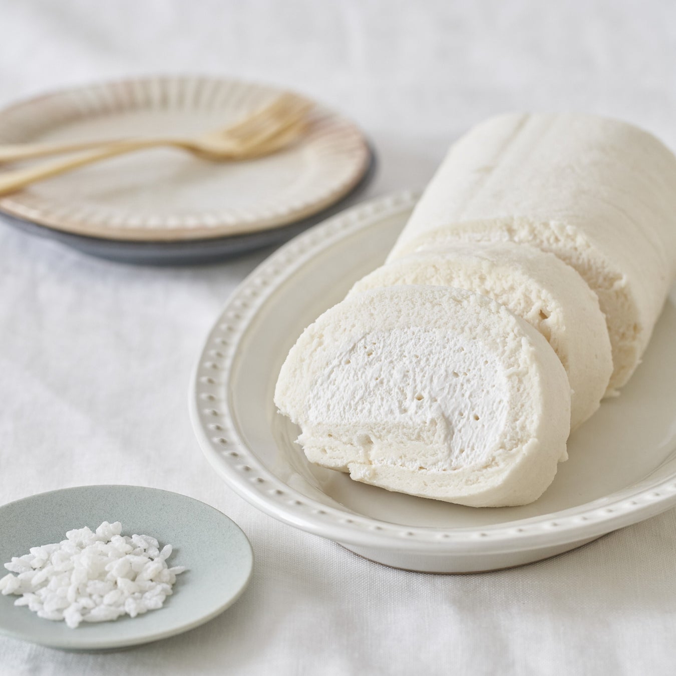 見た目は雪のように真っ白で、食べると米のほのかな香りと甘みを感じられます。秋田の食材を存分に活かしたロールケーキを是非お試しください。