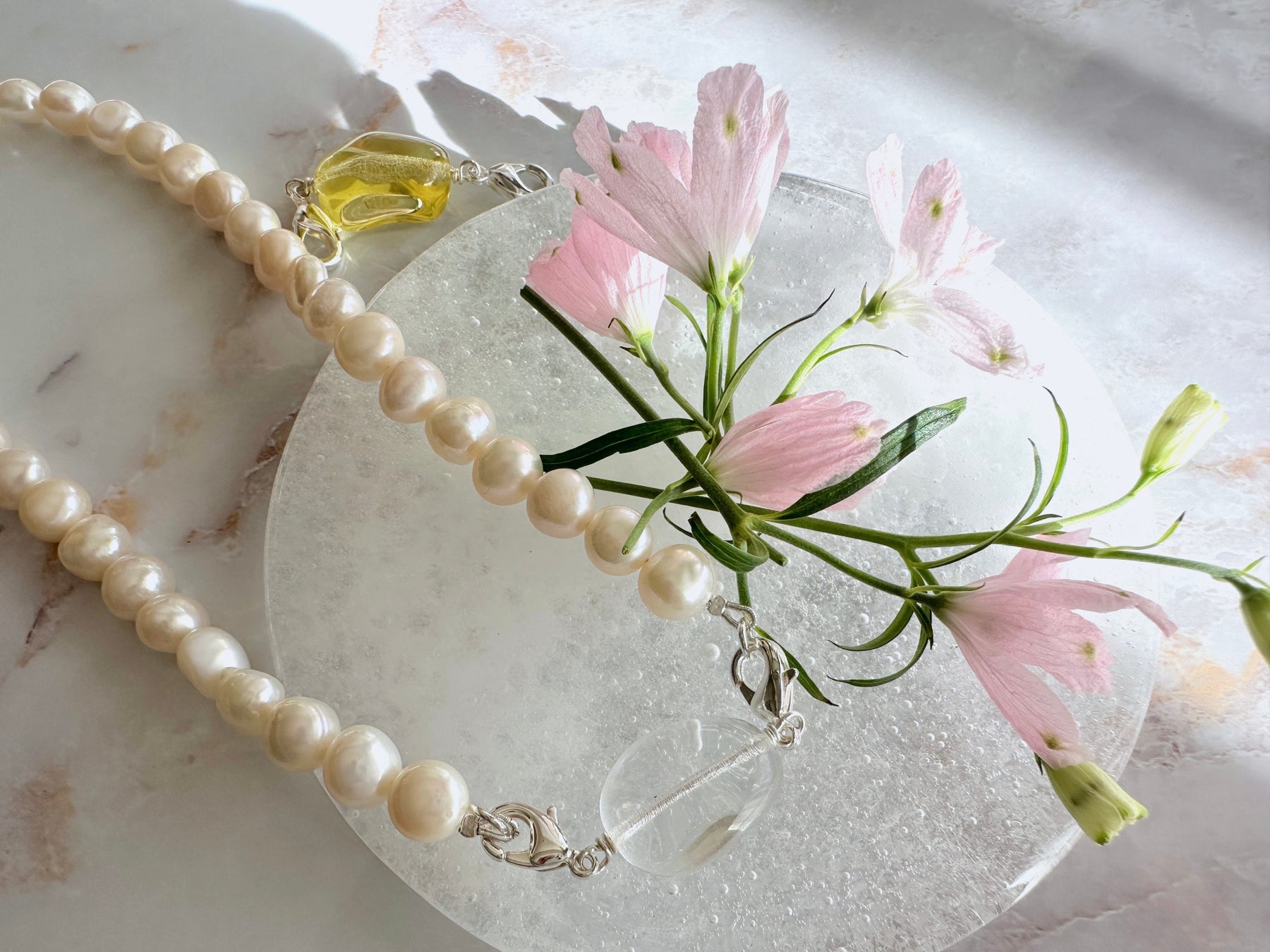 今回ブランド創始者のジャンヌと、娘でありデザイナーでもあるセシルの来日を記念して、3月8日限定で、ネックレスをご購入の方に「バースデーチャーム」をその場でお付けするサービスを実施します。誕生月の色のガラスビーズを追加するこのサービスは、自分らしいスタイルを大切にするジャンヌのアイデアで実現しました。