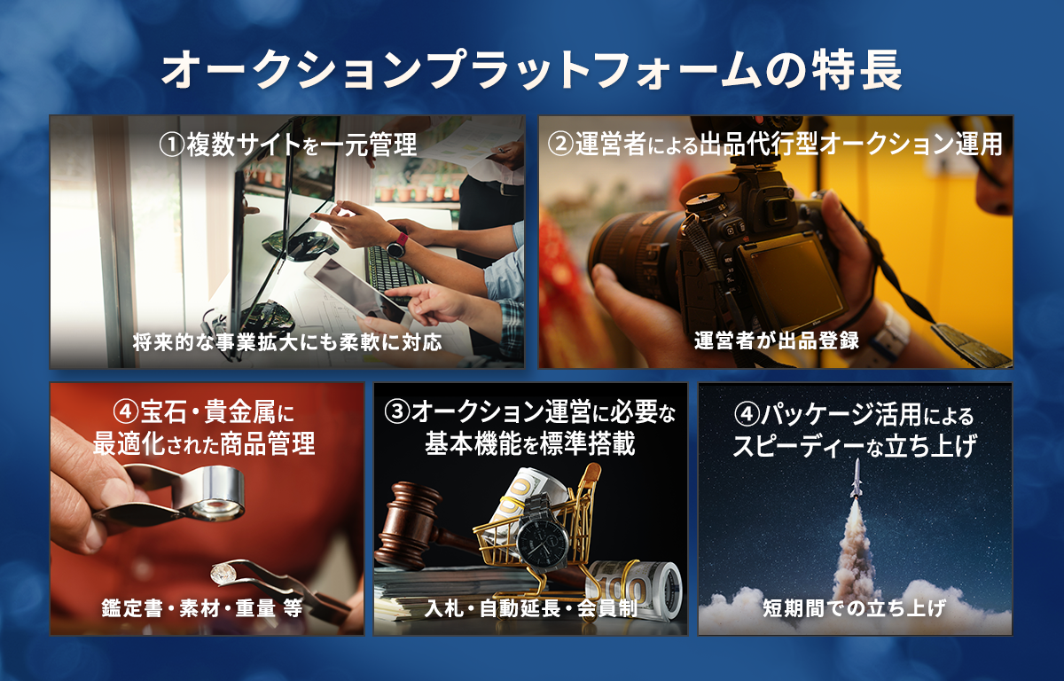 今回、本プラットフォームを導入した事業者では、鑑定・加工・販売を一貫して行う自社の強みを活かしつつ、取扱商品の販売機会を拡大し、業務全体の効率化を図ることを目的に、独自のオークションプラットフォームの構築を決定しました。