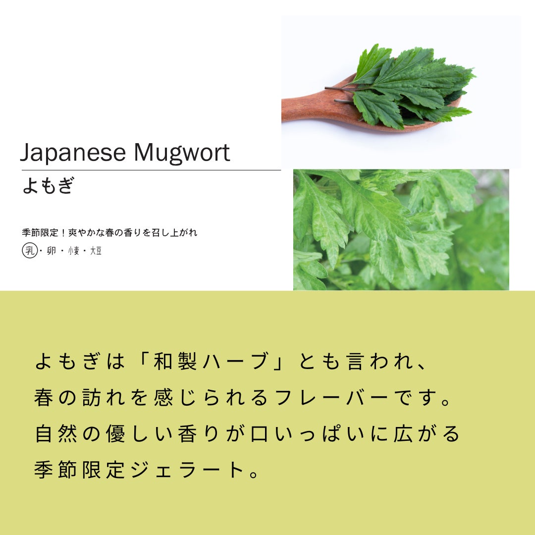 よもぎは「和製ハーブ」とも言われ、春の訪れを感じられるフレーバーです。自然の優しい香りが口いっぱいに広がる季節限定ジェラート。