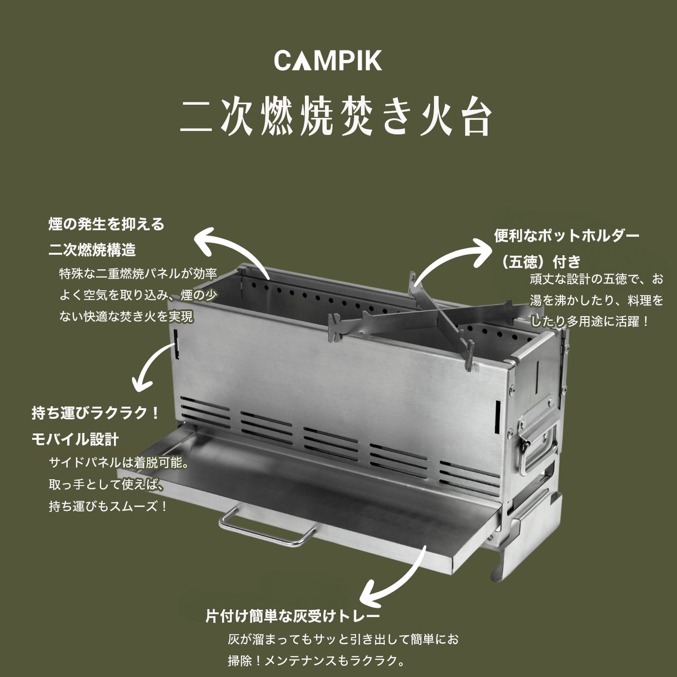 ■ 商品名:煙レス焚き火台『CAMPIK(キャンピック)』
