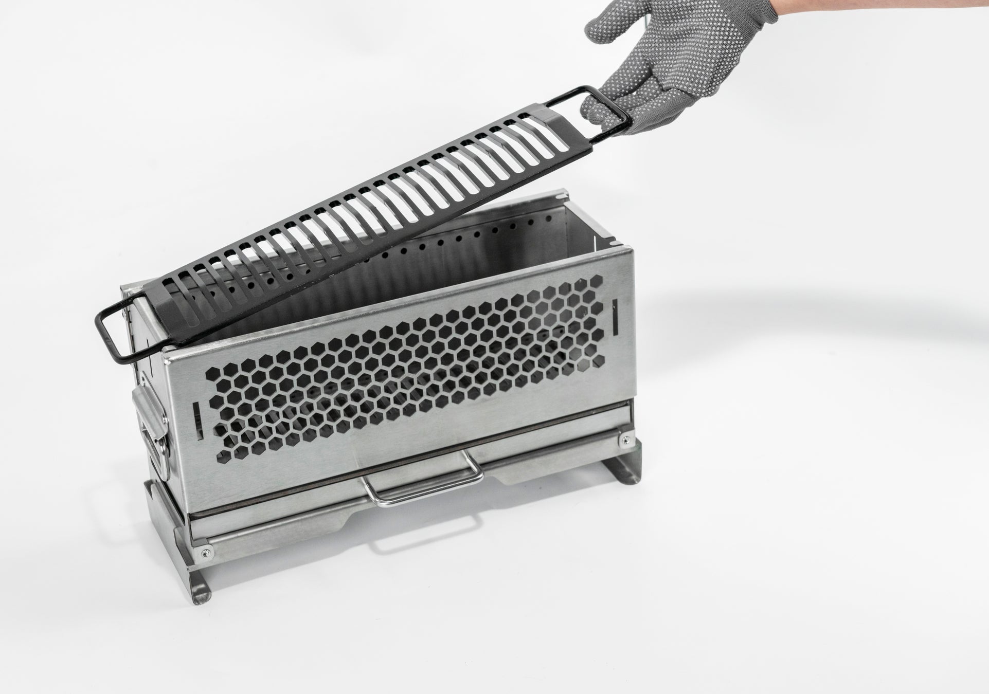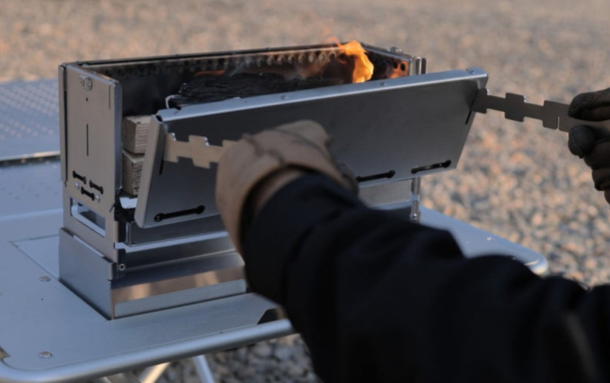 本体はスライド式で火床の拡張が可能な上、使用後は数分で折りたためる構造。