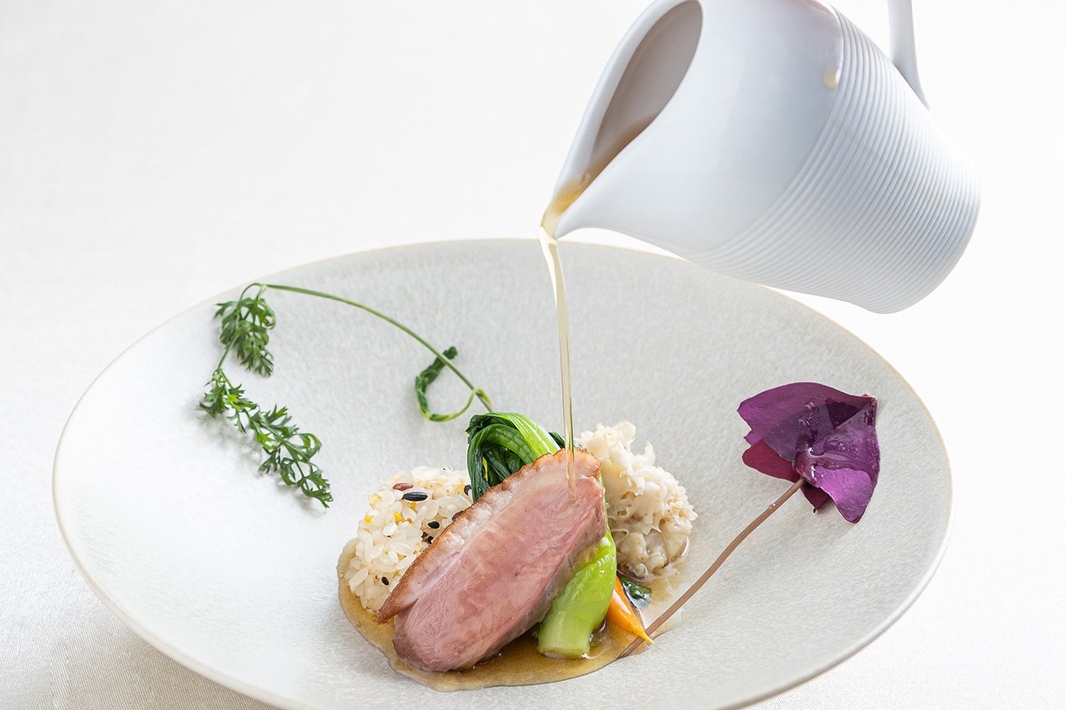 希少価値が高いはなびらたけの採用で、はなびらたけの華やかさと明るい色が、華麗なフランス料理と繊細な日本料理との調和したコース料理を引き立たせ、家庭料理とは異なる非日常を演出、味わい深い旨味や風味などの豊かさが結婚式などの祝宴の場をより印象深いものにします。