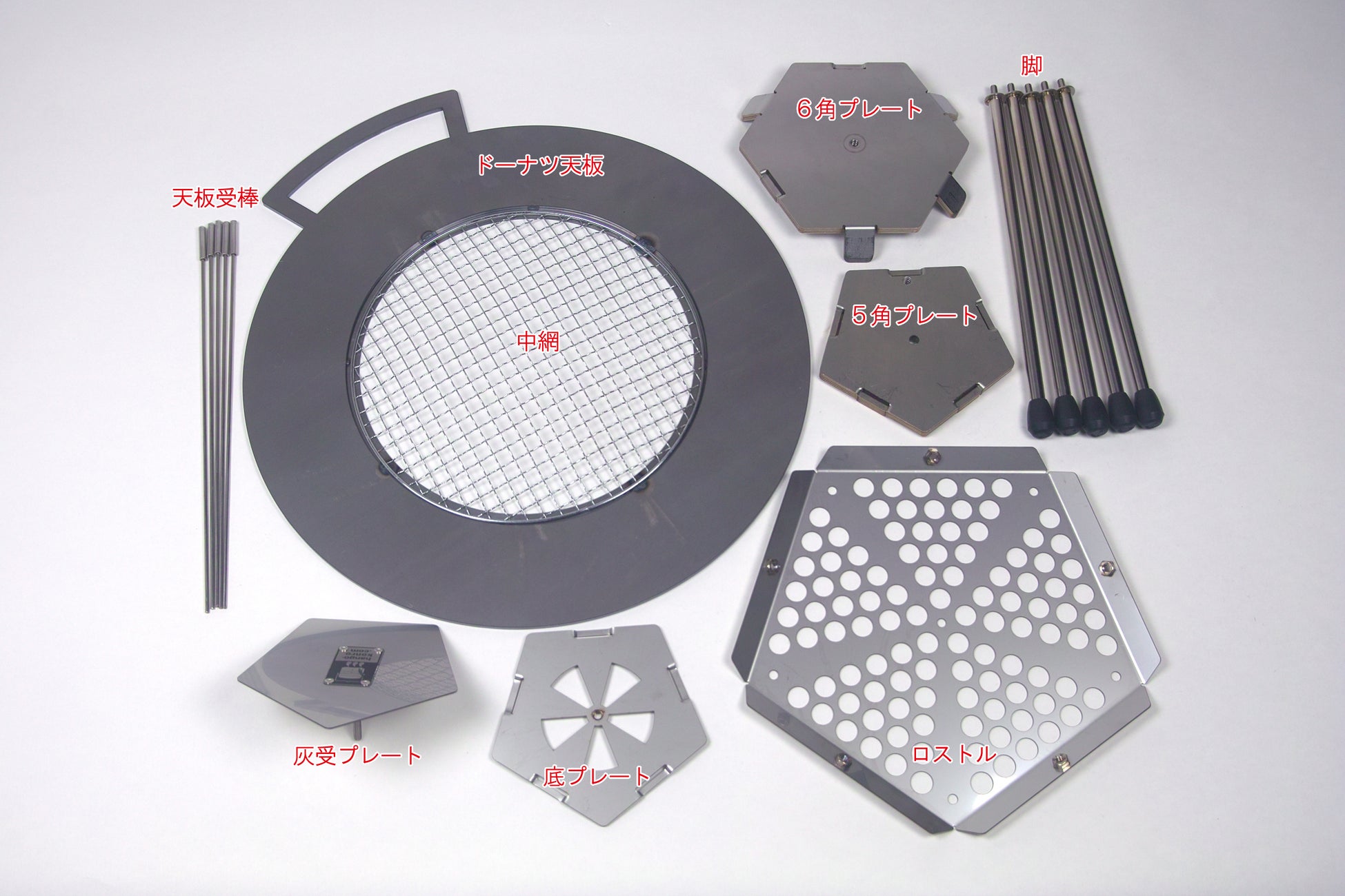ドーナツ天板を一旦外して炭熾し。熾ったらドーナツ天板を戻し調理開始。鉄板でも網でも同時に調理可能。炭火なら長い時間パーティーを楽しめます。