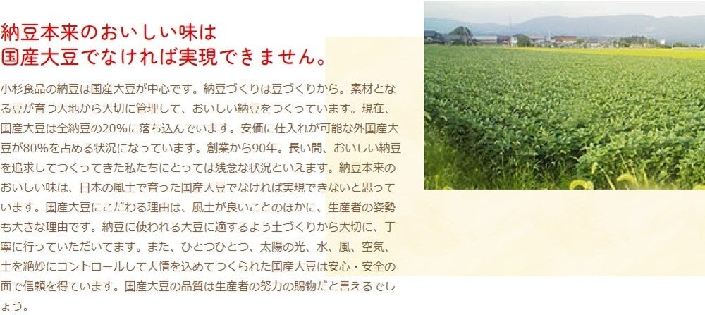 小杉食品は創業90年、皆様に喜ばれる納豆をお届けすることに専念しております。