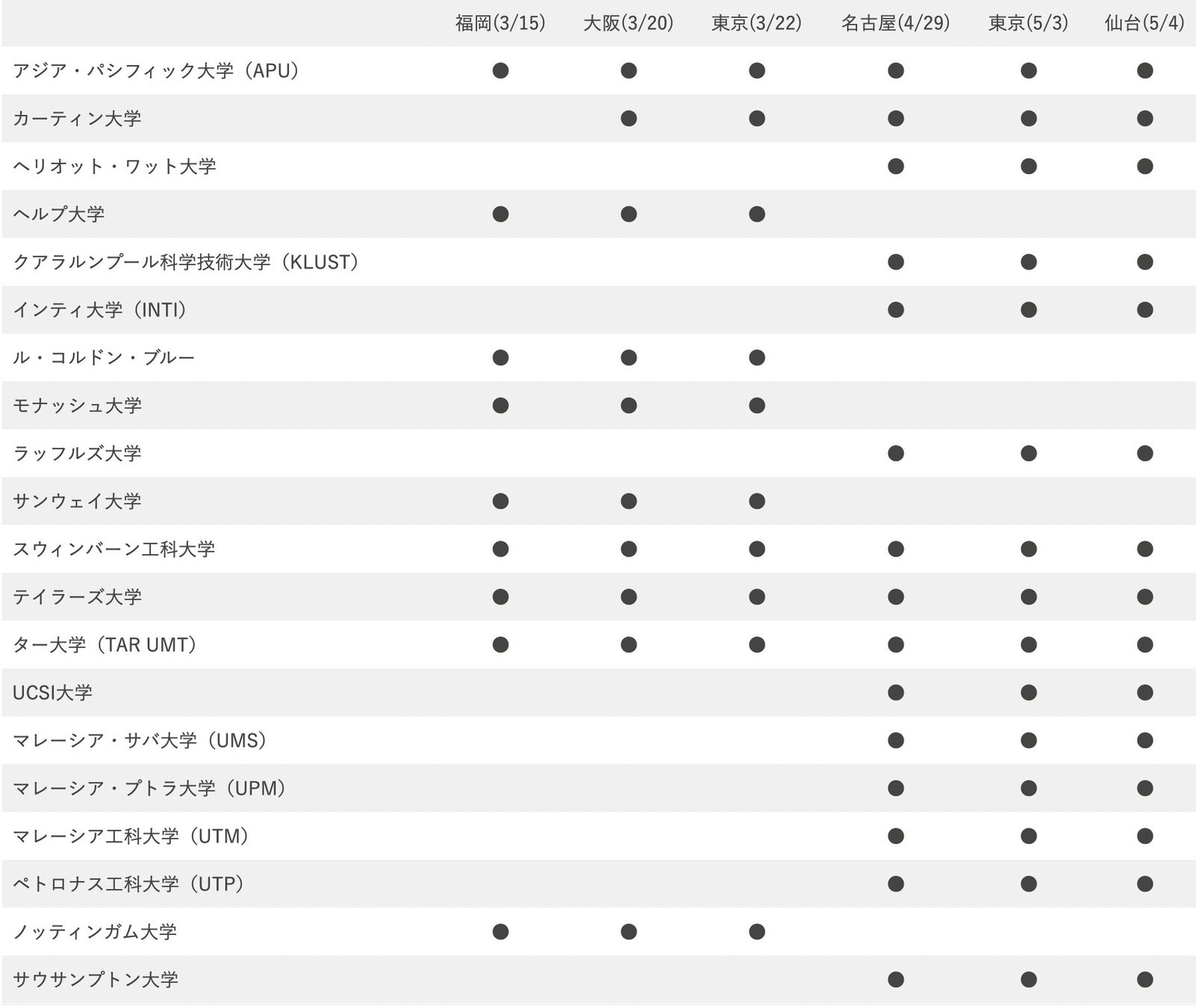 仙台・名古屋・東京(追加日程)の3会場が新たに決定!マレーシア政府公認機関 EMGS が共催パートナーとして参画し参加大学も21校に大幅拡充