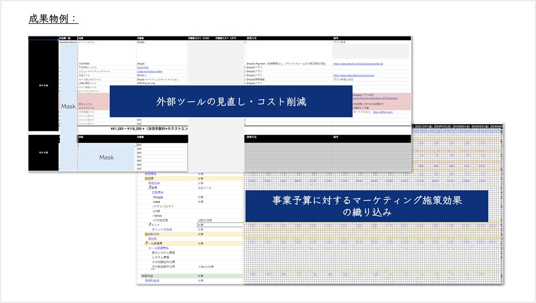 マーケティング戦略策定、SNS・広告媒体別設計、代理店連携・社内コミュニケーション設計など