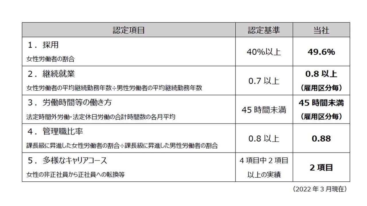 当社は認定基準の5つの評価項目すべての基準を満たし、3段階中最高位の3つ星を取得しております。