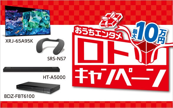 ソニーのテレビ、サウンドバー・ホームシアターシステム、ネックスピーカー、4Kブルーレイディスクレコーダーを購入すると最大で10万円をキャッシュバックする『おうちエンタメ ロトキャンペーン』実施!