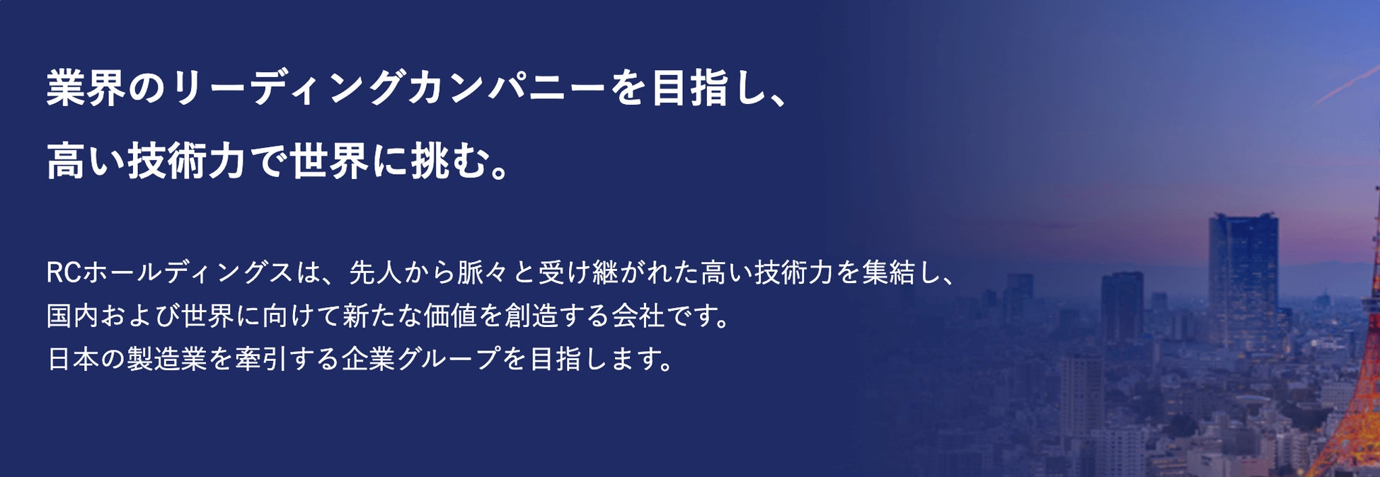 RCホールディングスは、先人から脈々と受け継がれた高い技術力を集結し、国内および世界に向けて新たな価値を創造する会社です。日本の製造業を牽引する企業グループを目指します。現在は、理研アルマイト工業株式会社、関東化学工業株式会社、株式会社都精機、株式会社サンエー、株式会社ソルテックの計5社の完全持株会社です。