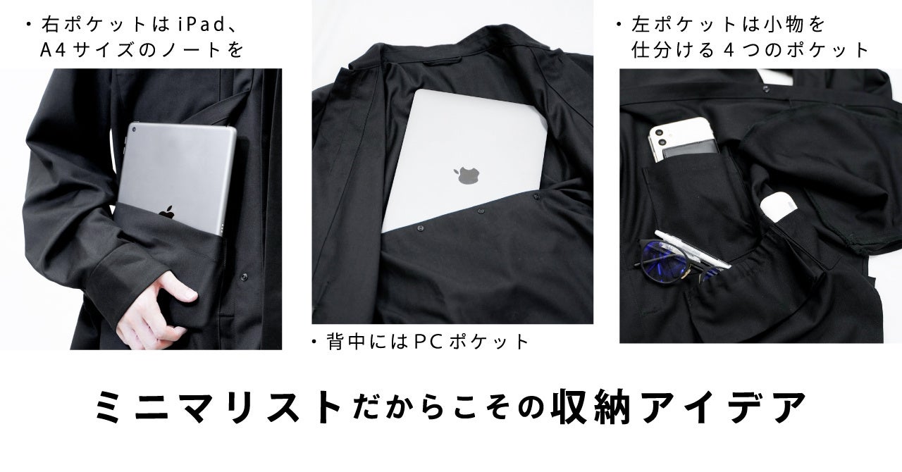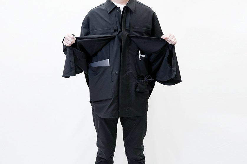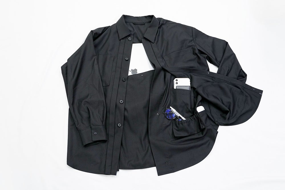 すべてシャツ1枚に収納出来たら。そんなアイディアから生まれた「バッグレスシャツ」