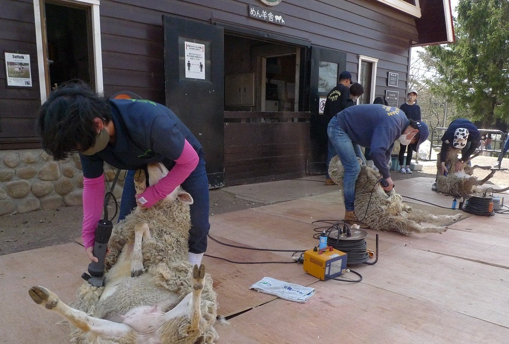 こうした活動の一環として、4月9日(土)、10日(日)には、六甲山牧場で開催された羊の一斉毛刈りイベントに参加させていただきました。