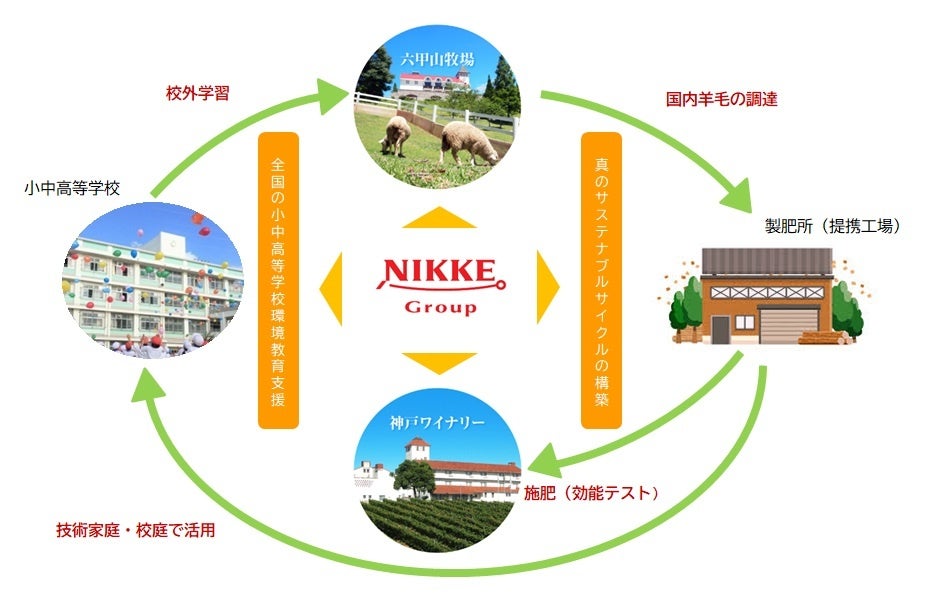 9つのアクションのうち、「ウールのリサイクルシステムの運用」「グローバルに活躍できる人材育成活動」の具現化を目指し、一昨年から、ともに神戸発祥である神戸農政公社「六甲山牧場」との取り組みを開始しました。これまでに、牧場で社員が子供向けのイベントを開催したり、当社が別途行っている出前授業に牧場のスタッフが参加したりという形で、羊を通じたコラボレーションを行っています。観光牧場と民間企業が手を取り合うからこそのシナジー効果を発揮し、地域社会への貢献や、子供たちに向けた環境教育への支援を目指していければと考えています。