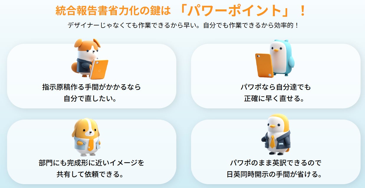 パワーポイントで作る「統合報告書」の特設ページを公開!効率的・柔軟・コスト最適な制作をサポート。