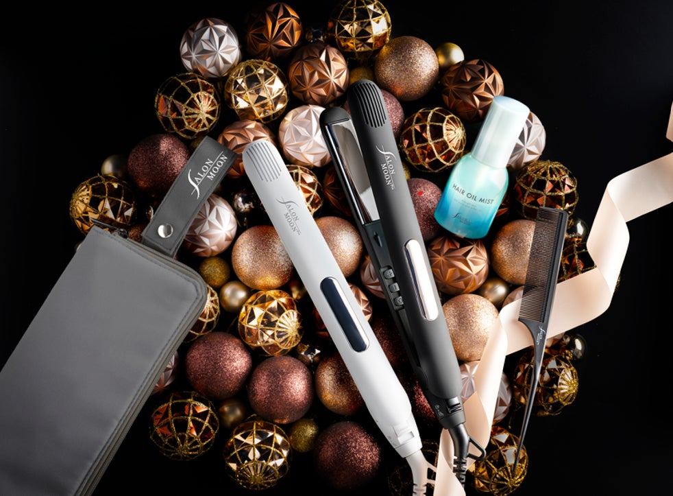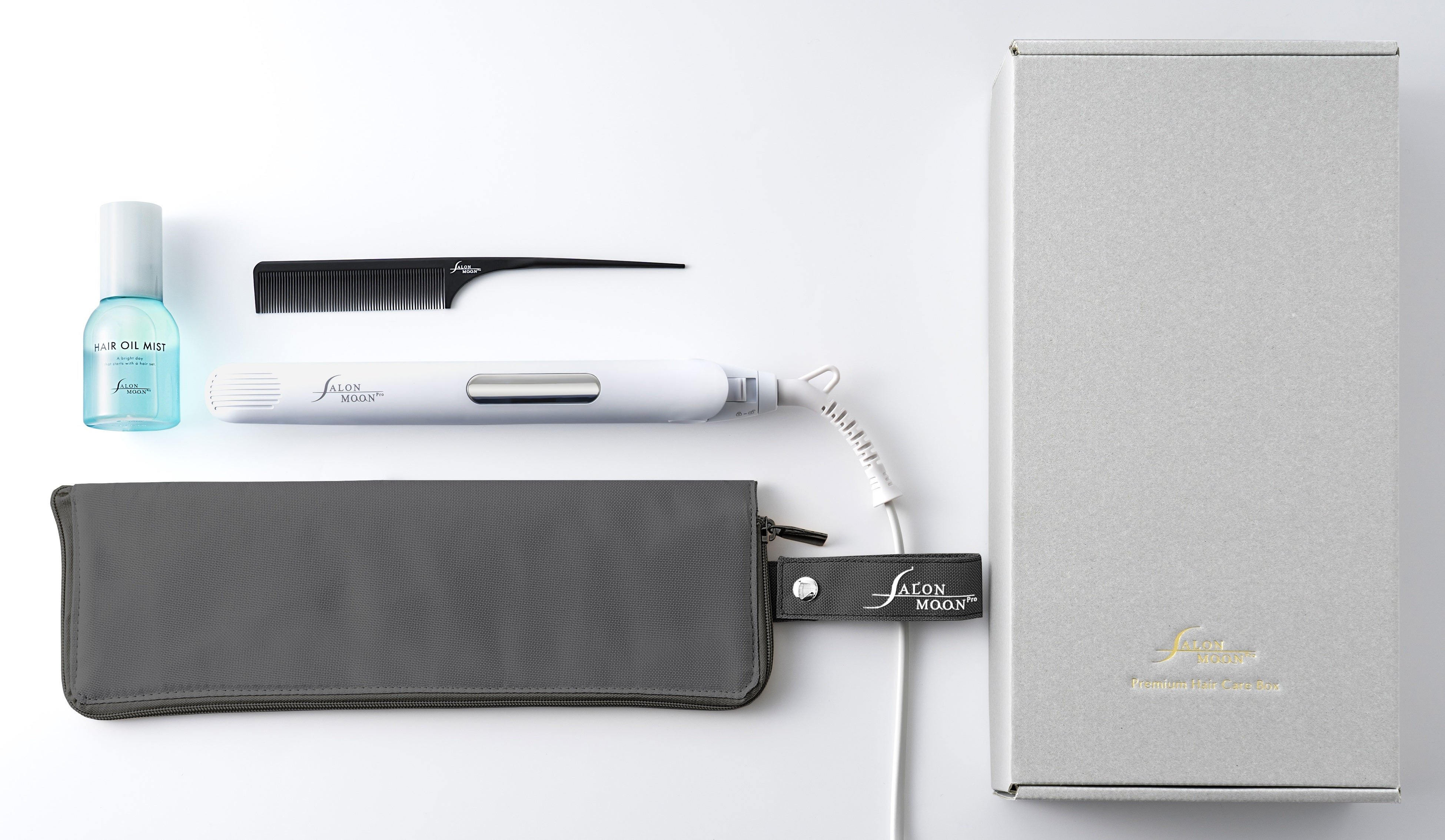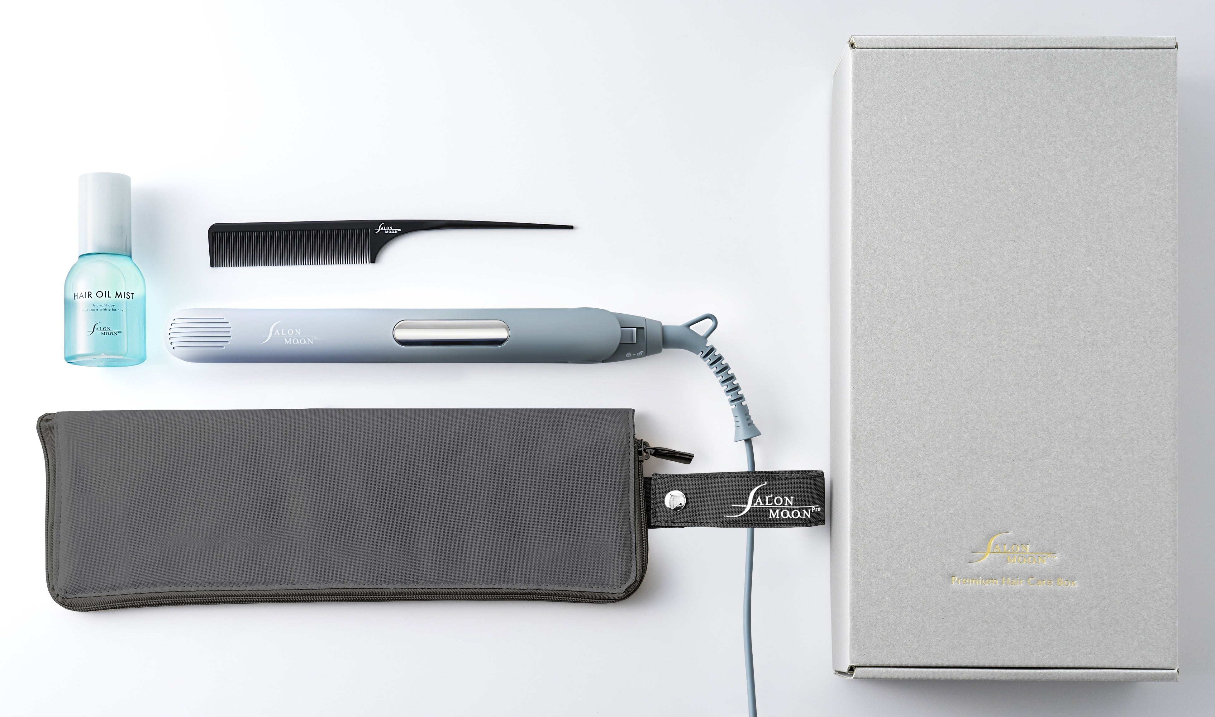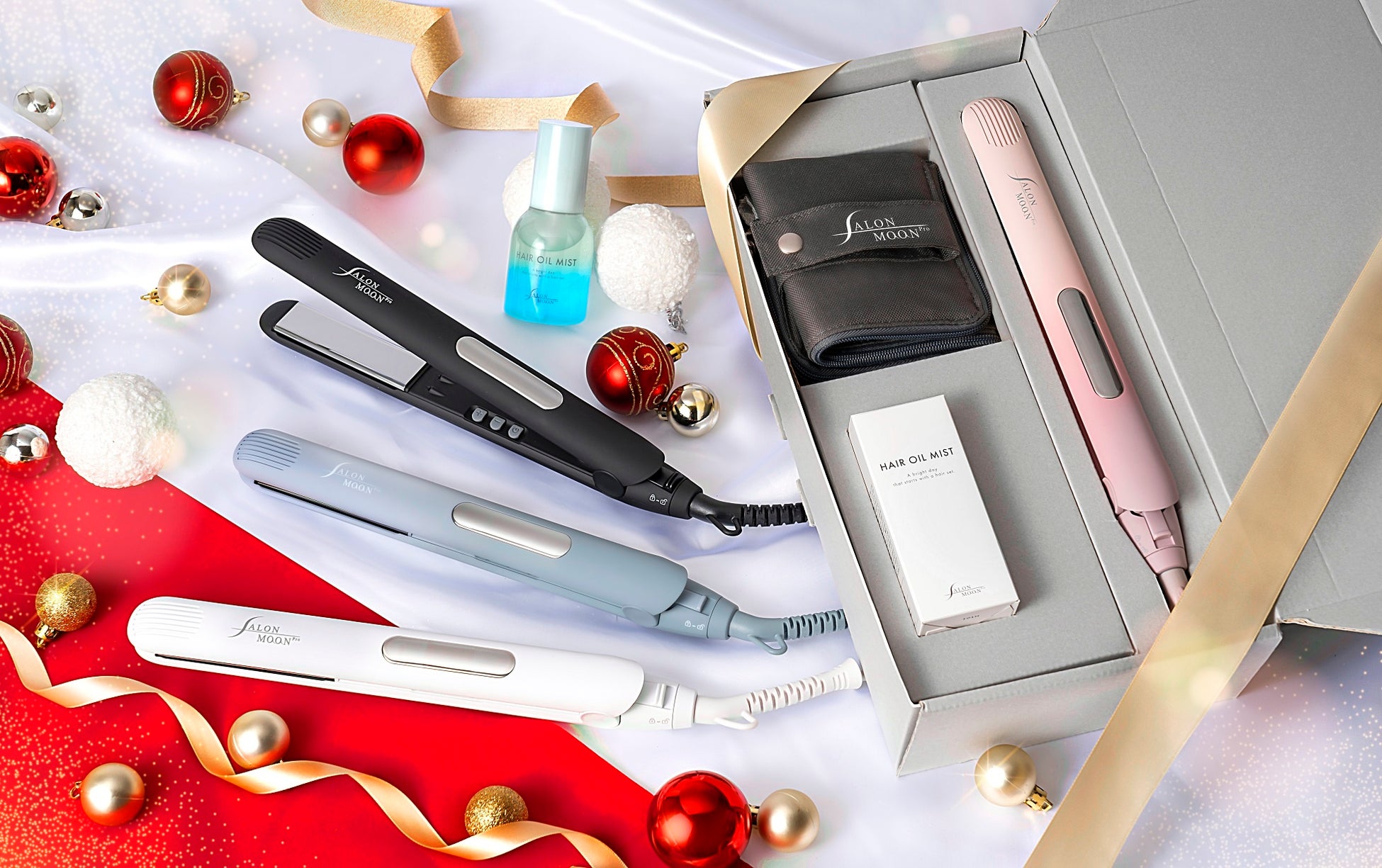 ブランド初となるホリデーコレクション『サロンムーン プレミアム ヘアケア ボックス』は、オリジナルギフトBOXに大人気のストレートヘアアイロン、限定パッケージのヘアオイルミスト、ヘアコーム、限定ポーチを詰め込んだ特別なセットです。1年頑張った自分へのご褒美や、大切な方への贈り物に。華やかなホリデーシーズンに、美しいヘアスタイルへ導く特別なコフレをご用意いたしました。