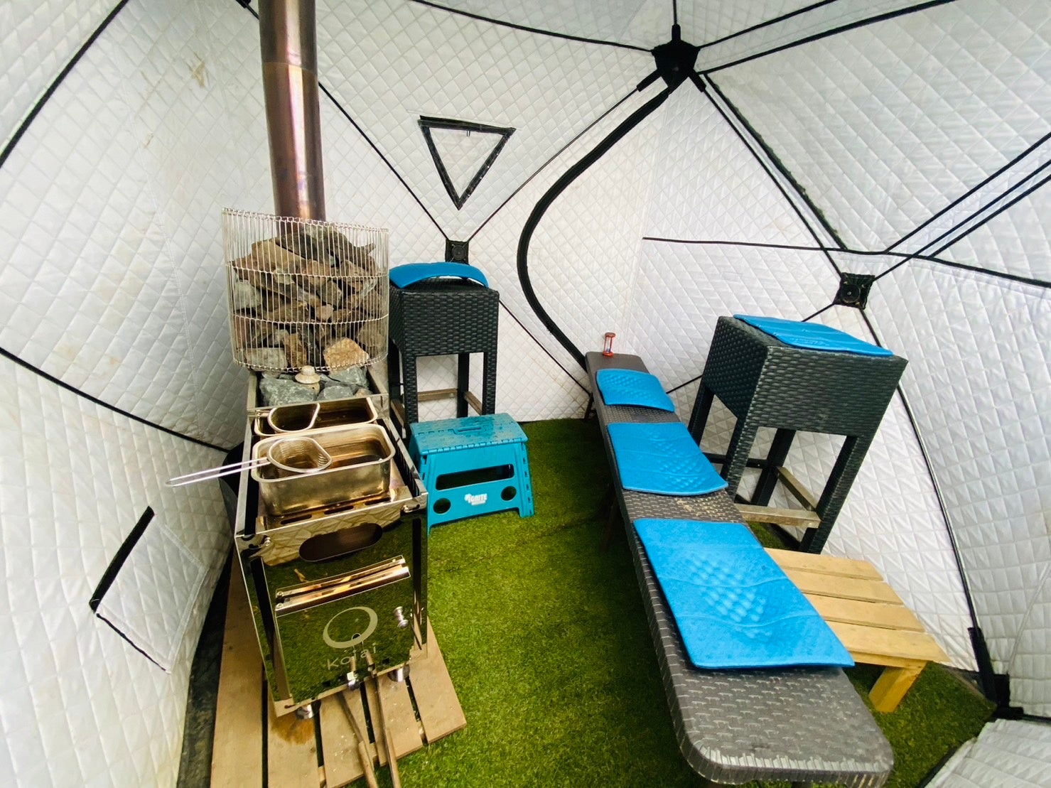 アウトドアサウナ(4人用)は弊社プロスタッフと別途調整いただき、ご希望の時間帯(深夜帯除く)でお入りいただけます。勿論弊社自慢のアウフグースサービスもあります!