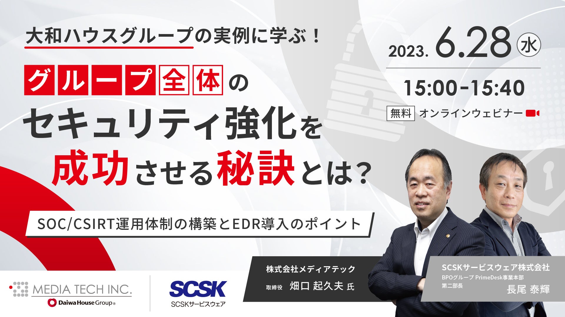 「大和ハウスグループの実例に学ぶ!グループ全体のセキュリティ強化を成功させる秘訣とは?~SOC/CSIRT運用体制の構築とEDR導入のポイント~」オンラインセミナーを開催