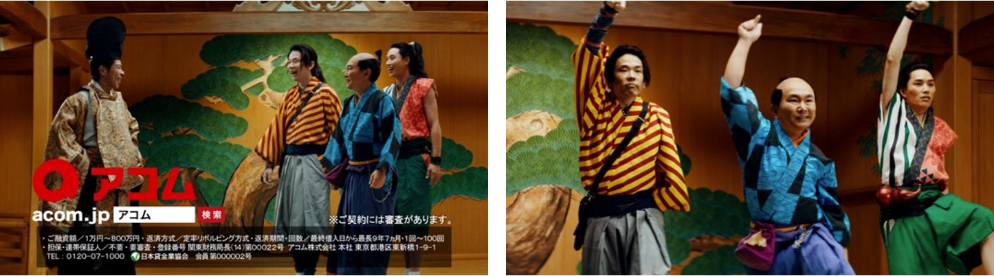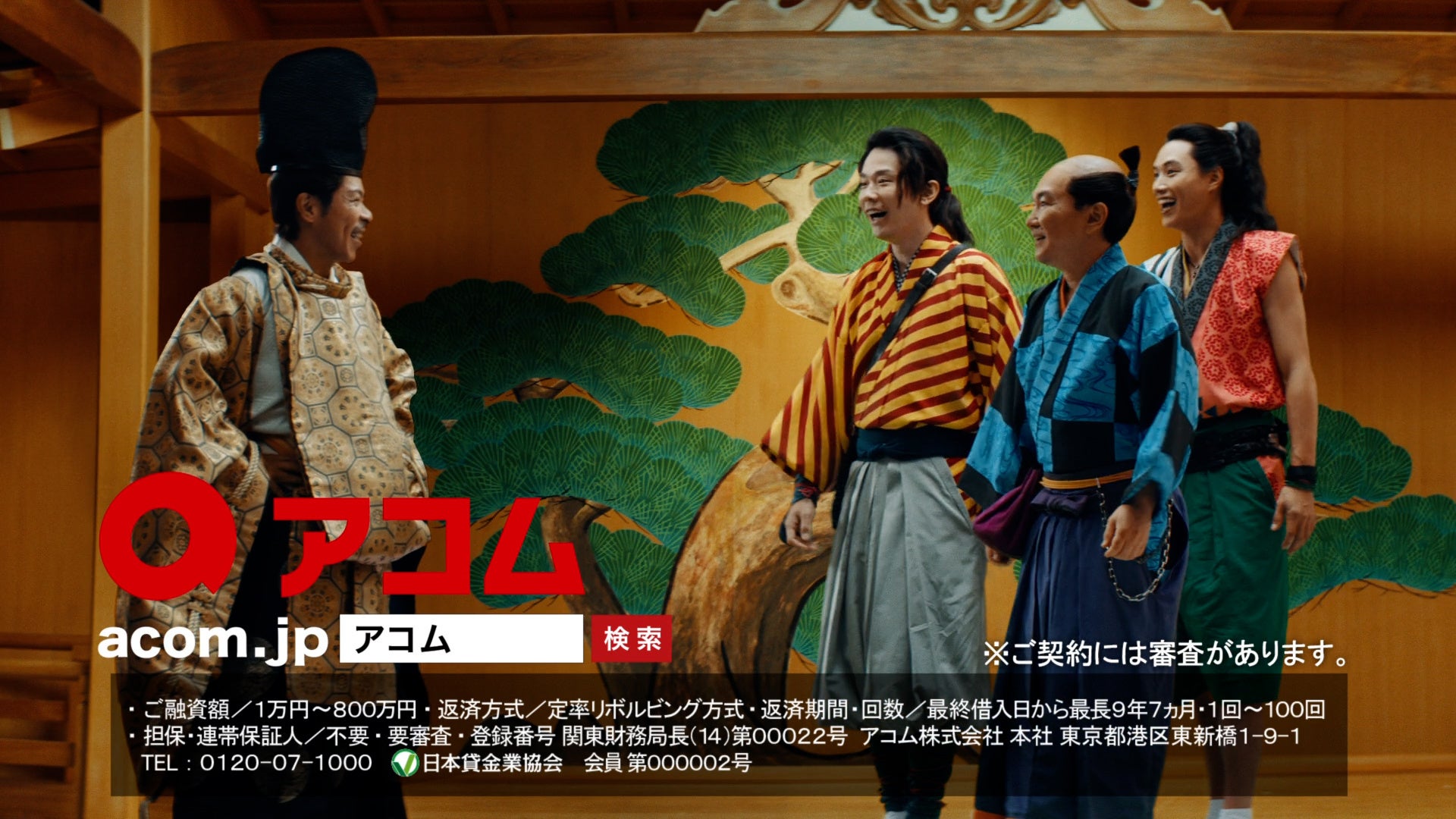 「今しかできないことを。」をコンセプトとし、架空の安土桃山時代を舞台に鈴木伸之さんが織田信長、かまいたち濱家隆一さんが豊臣 秀吉、山内健司さんが徳川家康に扮するアコムのテレビCMシリーズ「侍ビッグ3」。