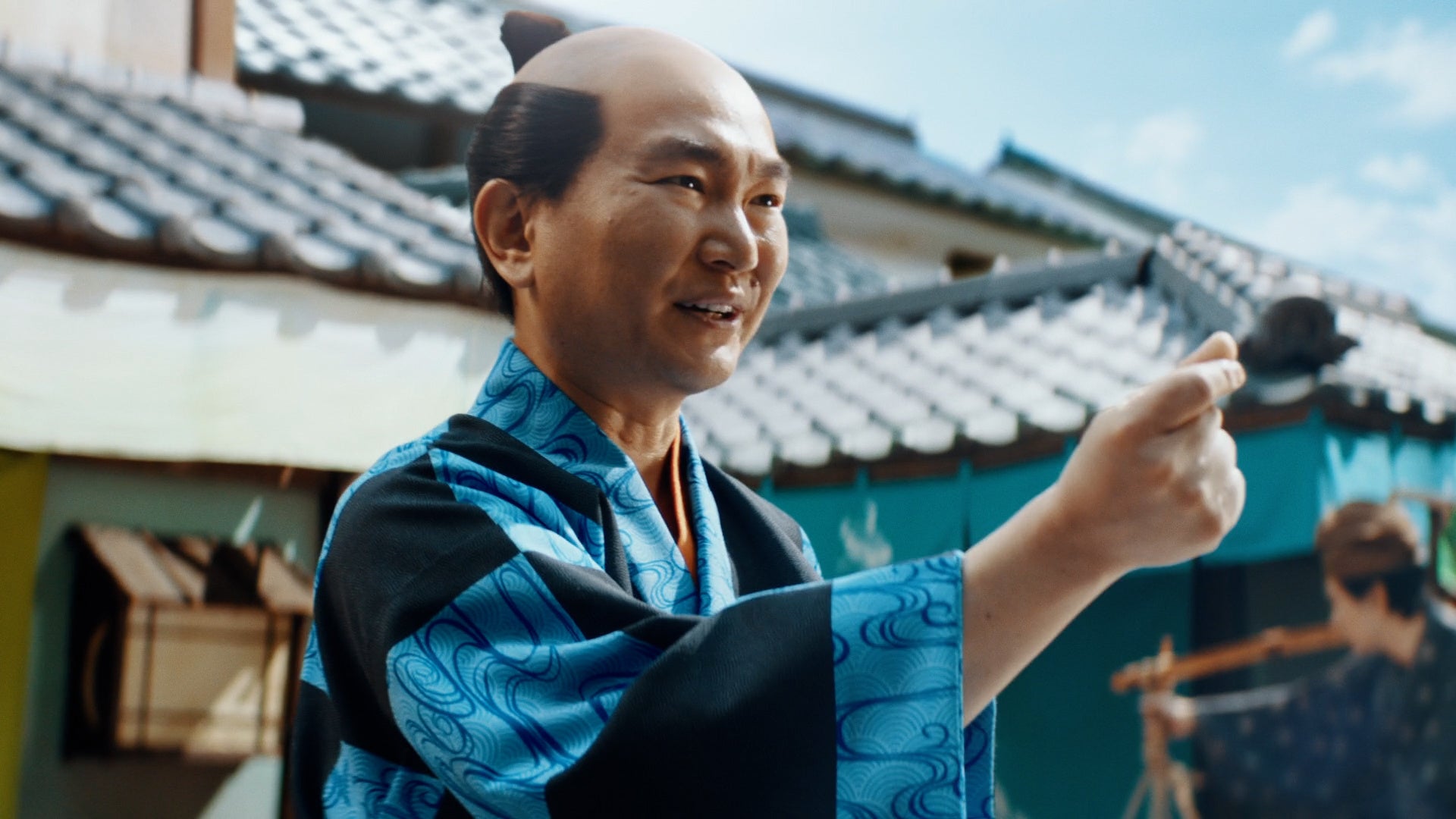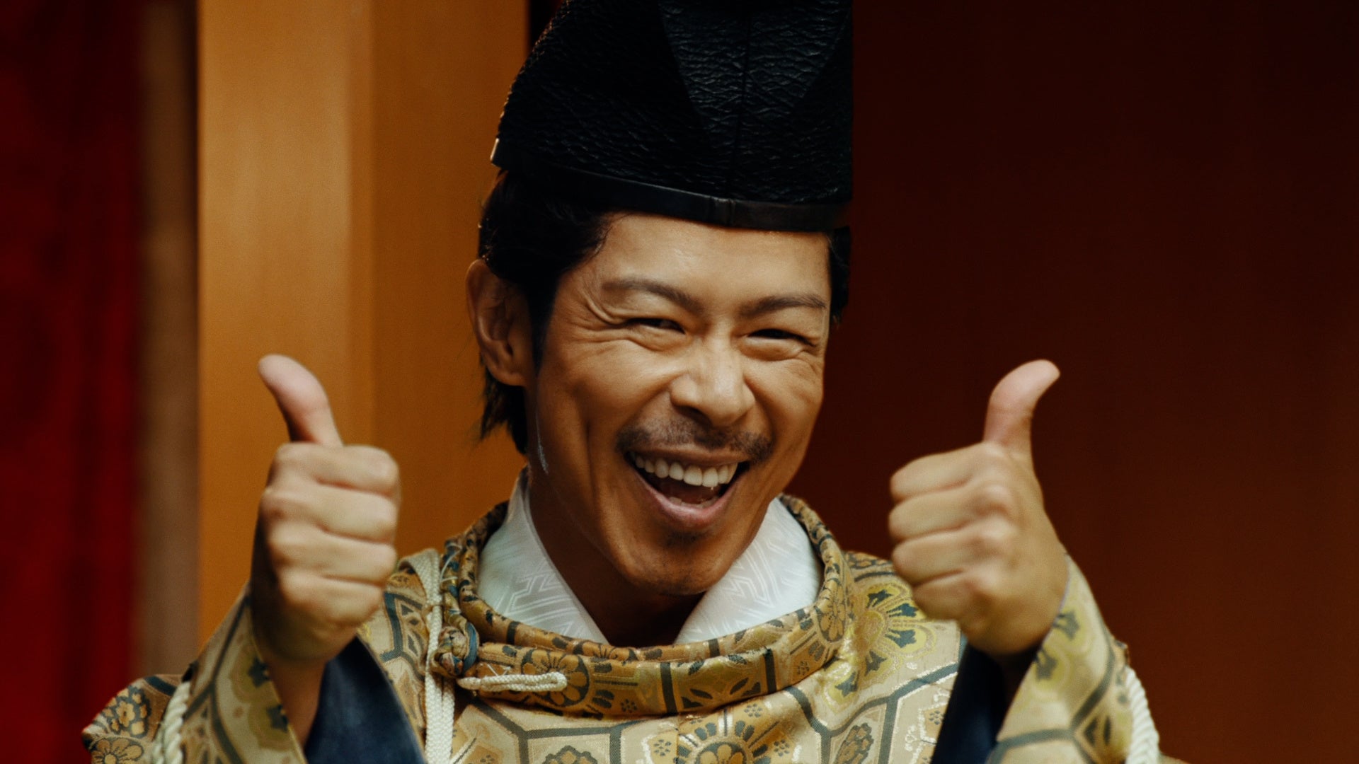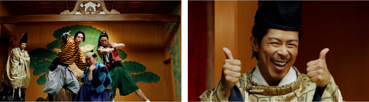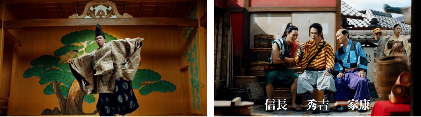今回のテレビCMは、能楽堂でMATSU先生がキレキレに踊るところからスタートします。侍ビッグ3人が憧れの目で動画を見ていると、突然家康が2人の前に立ち上がり、キレキレのダンスを披露します。